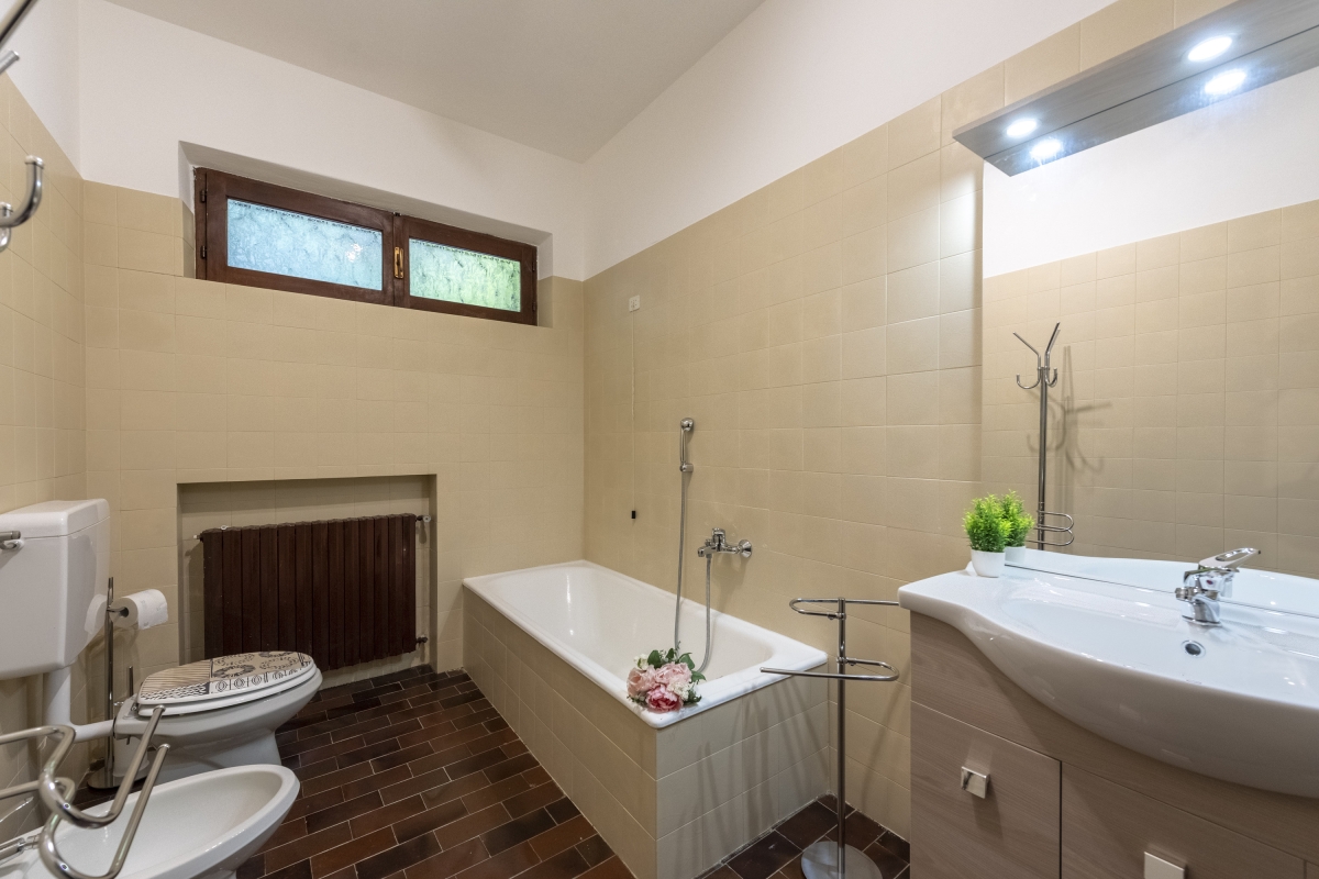 Bathroom 1: The first bathroom is fitted with a bath, a bidet, a WC and a washbasin