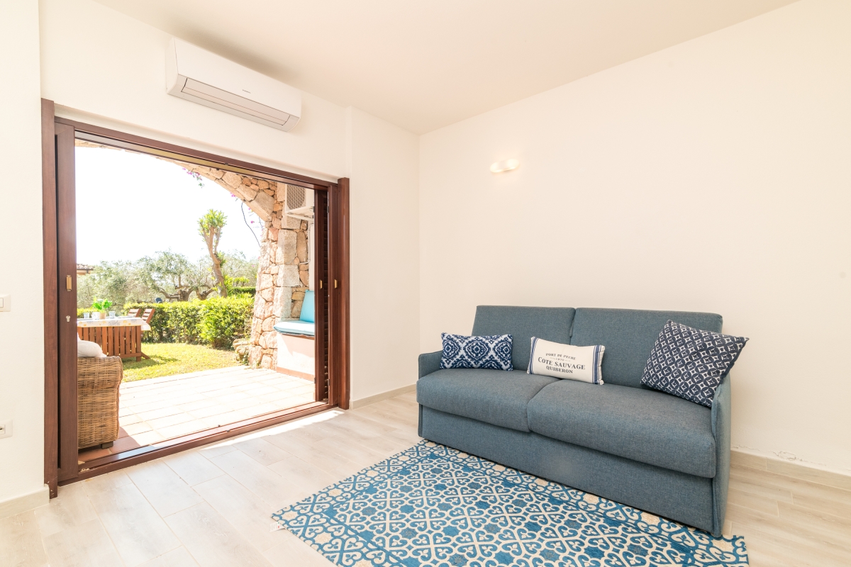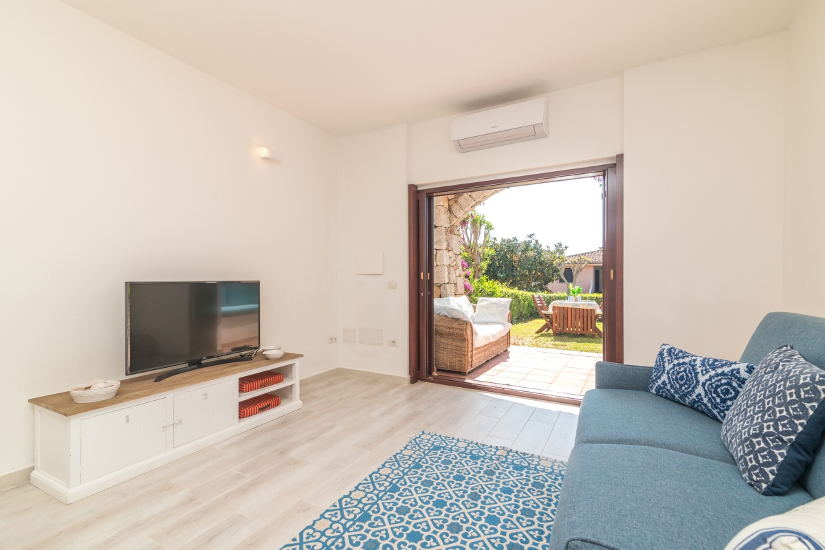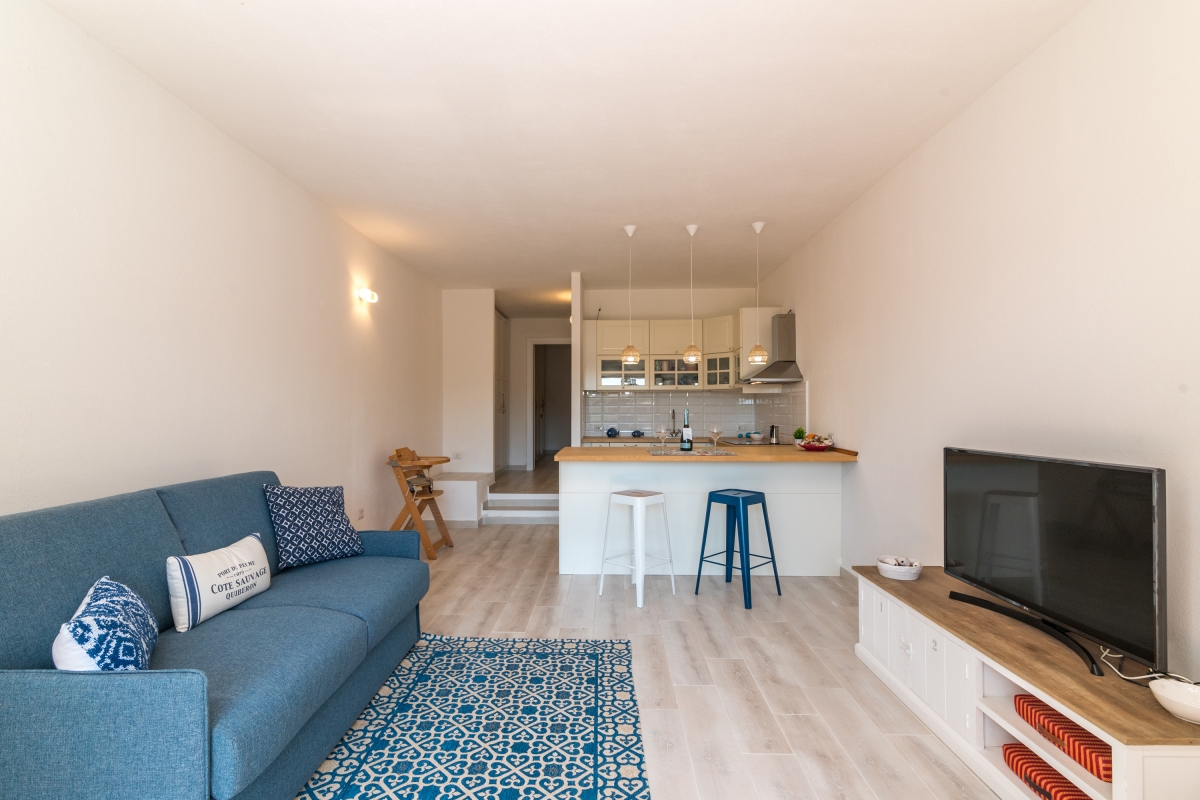 Conveniently located in the Residence I Fari holiday village, close to Porto San Paolo’s hub of boutiques, supermarkets and restaurants, this ground-floor apartment is an excellent choice for a getaway with family or friends. The property comfortably sleeps four guests and enjoys its own private garden and a covered veranda perfect for dining al fresco or relaxing with a morning coffee.