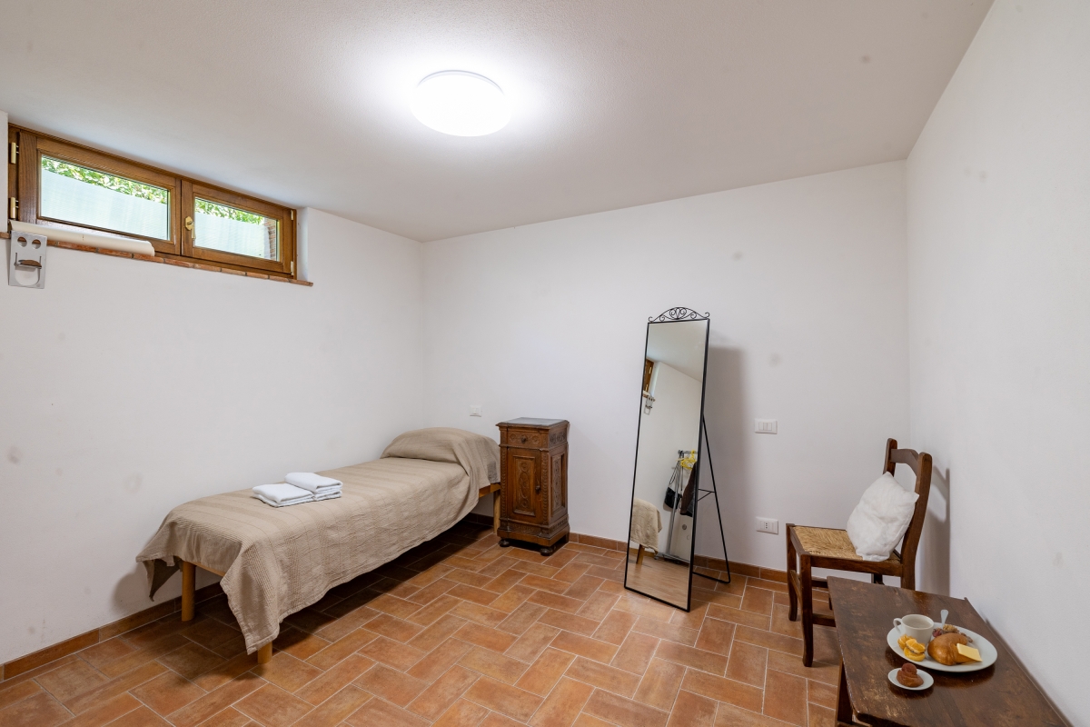 Bedroom 4: The fourth bedroom is quietly located in the basement and is furnished with a single bed.
