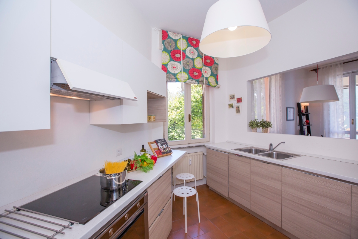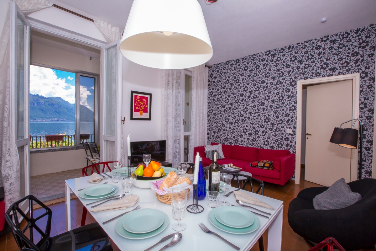 Offering a chic retro finish inside, the 85sqm apartment provides a unique interior with breathtaking lake views to match! On entering the apartment guests will find a spacious and stylish open plan living and dining room ideal for entertaining. A stylish red sofa allows guests to unwind in front of the flat screen TV provided, whilst easy access from here to the private lake view balcony terrace provides a lovely flow to the room. With sliding glass screens to offer shelter when needed, the balcony terrace offers the perfect warm and inviting area in which to relax throughout the year, with far reaching views of Bellagio to serve as the perfect back drop for enjoying a drink or evening meal to the small dining area.