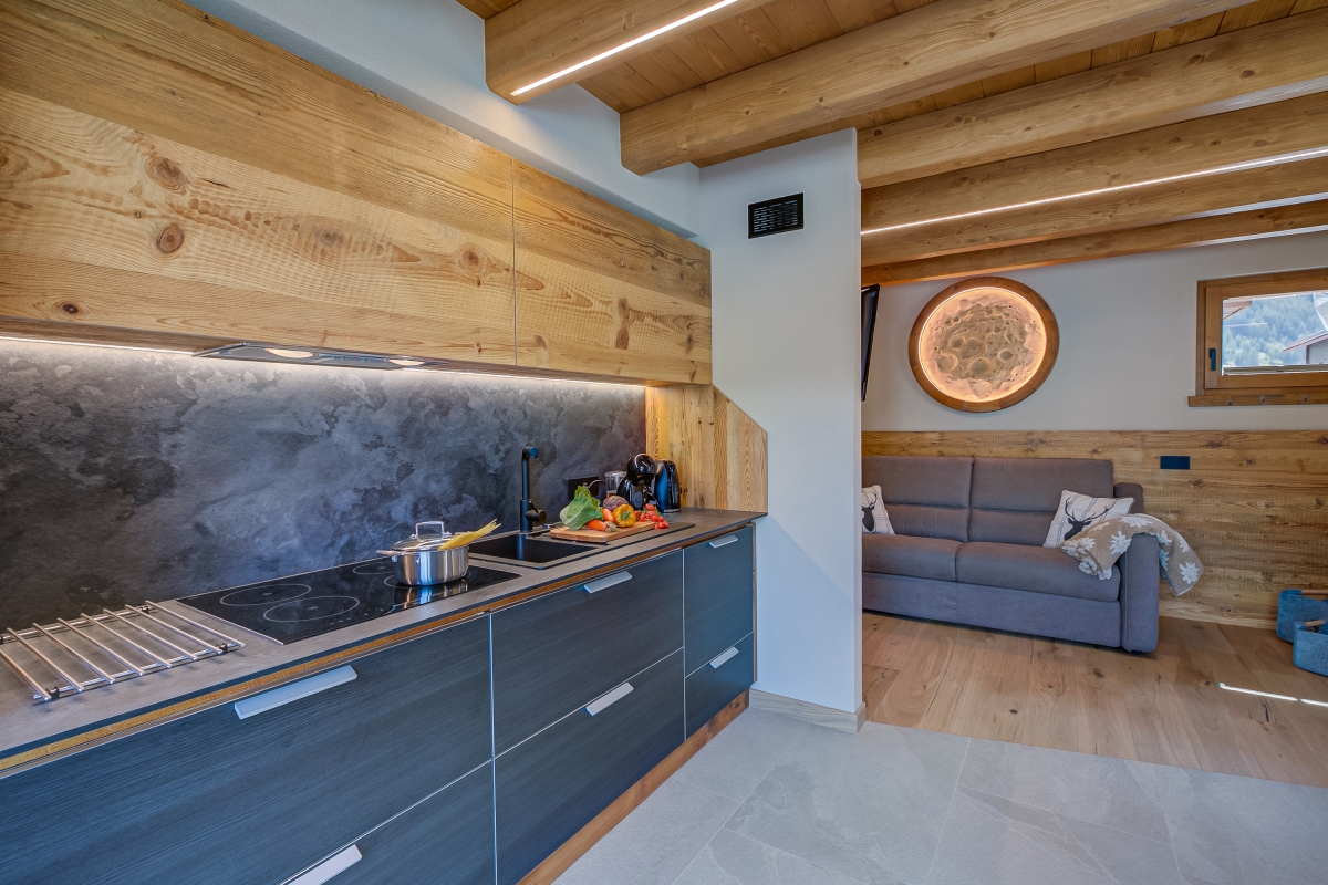 Inside, the property offers toasty under-floor heating along with cosy wood-panelled interiors and modern entertainment amenities like Smart TV and Wi-Fi. Guests can prepare their favourite comfort meals without any hassle in this kitchen which comes with a dishwasher, a coffee machine, a microwave, an oven, an induction hob, and a freezer.