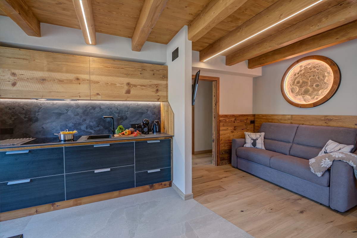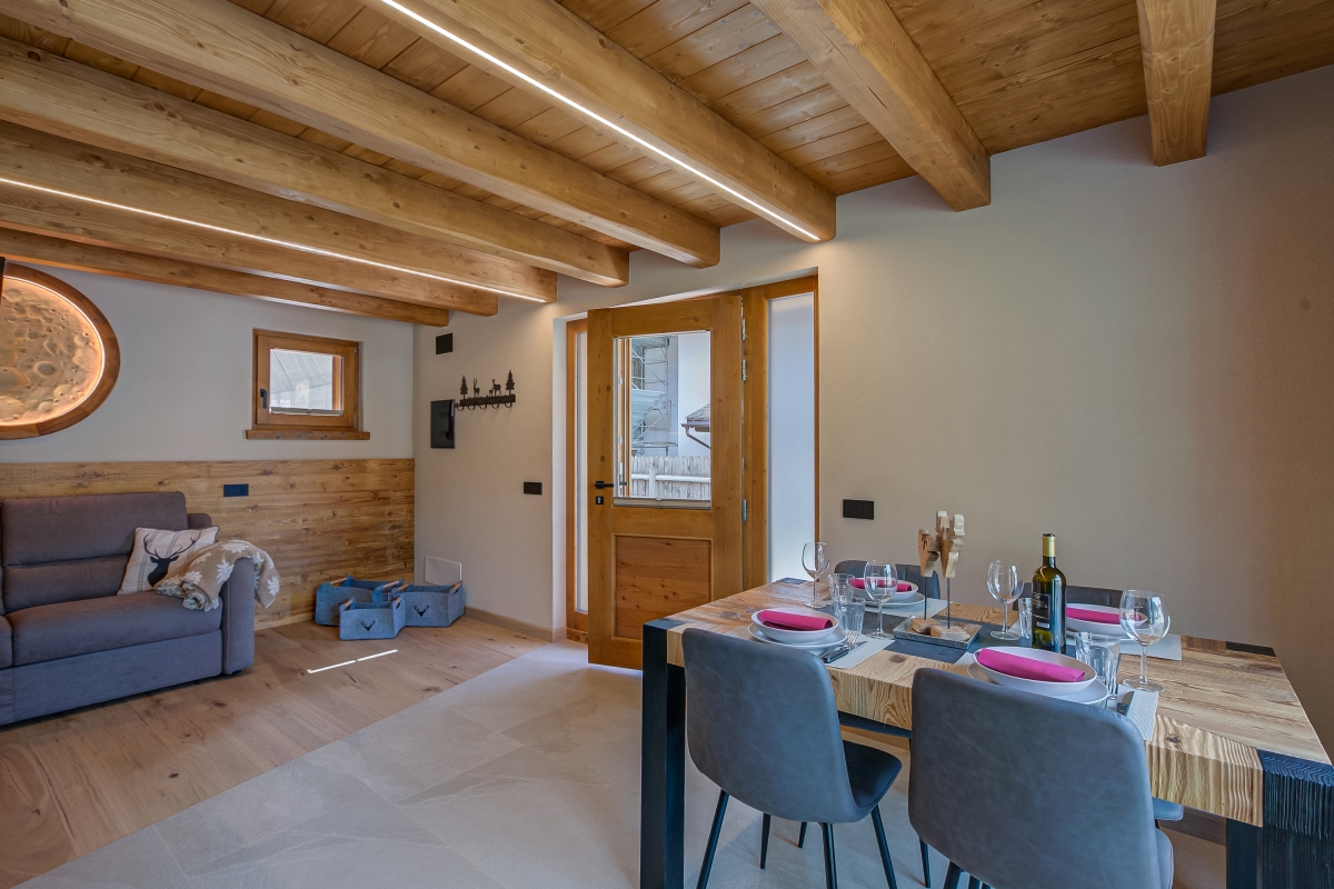 The house’s location and amenities are a definite source of delight for winter sports enthusiasts. It is close to skiing slopes, the first stop of the free ski shuttle bus and ski lifts (the closest ski lift is the Cassana Gondola, just a 7-minute walk from here). The beautiful holiday apartment facing the mountains is not only well-equipped but also well-served. It is located in the main town area on the main road so that all the necessary amenities like restaurants, shops and supermarkets are within walking distance.