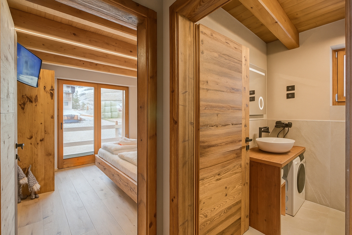 Come home to this effortless ground-floor ski base less than a 10-minute walk from the ski lift and featuring a Turkish bath!