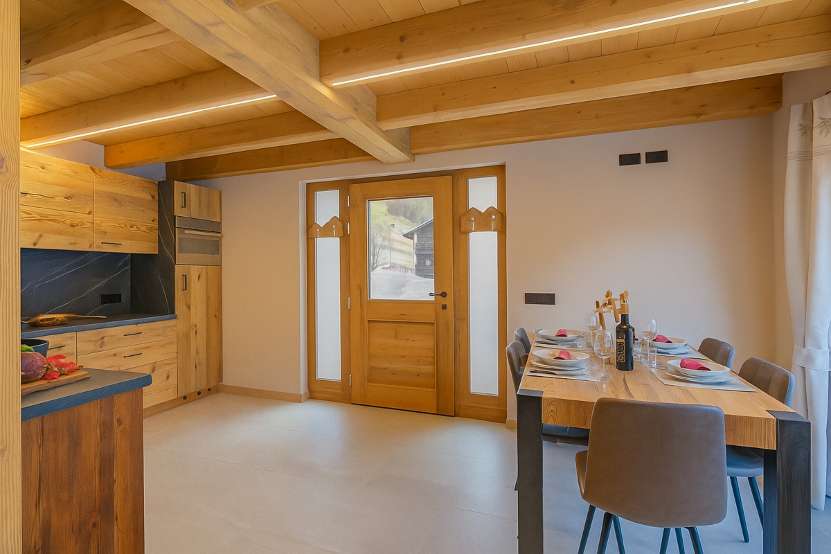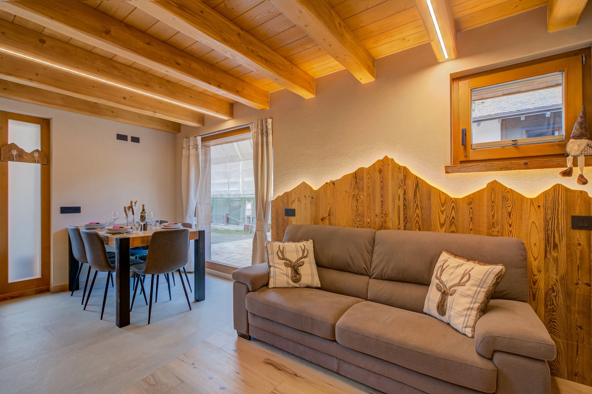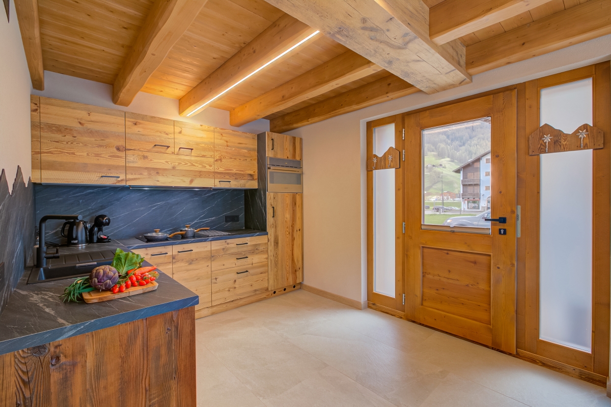 The house’s location and amenities are a definite source of delight for winter sports enthusiasts. It is close to skiing slopes, the first stop of the free ski shuttle bus and ski lifts (the closest ski lift is the Cassana Gondola, just an 7-minute walk from here). The beautiful holiday apartment facing the mountains is not only well-equipped but also well-served. It is located in the main town area on the main road so that all the necessary amenities like restaurants, shops and supermarkets are within walking distance.