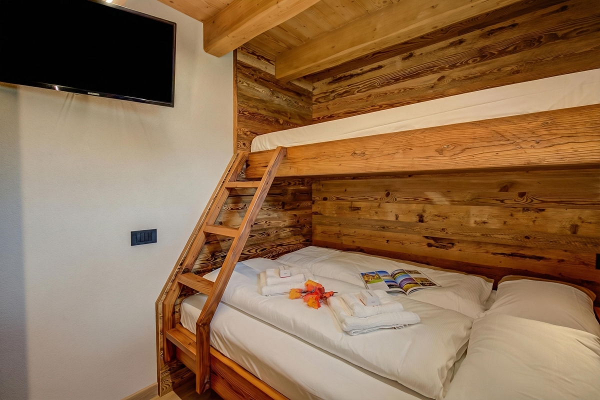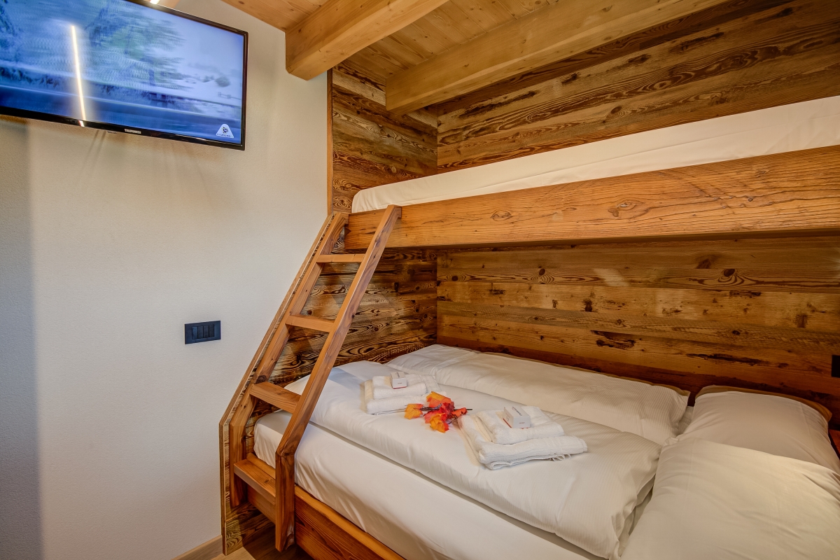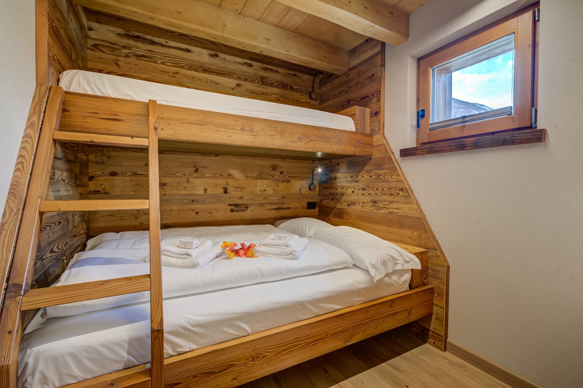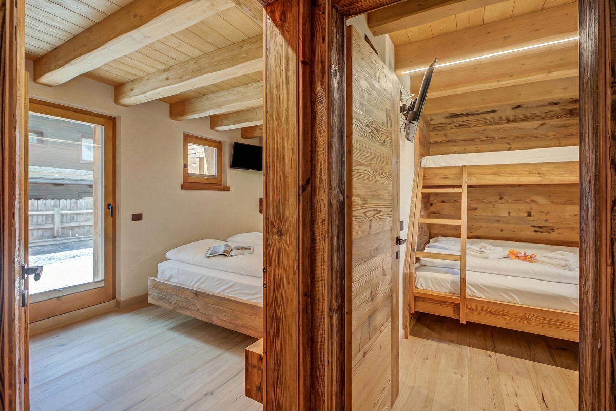 Bedroom 2: A double bedroom with bunk beds and a wardrobe.
