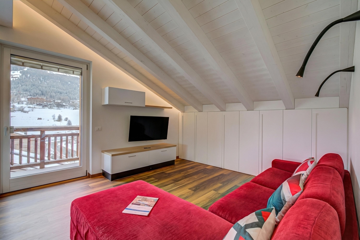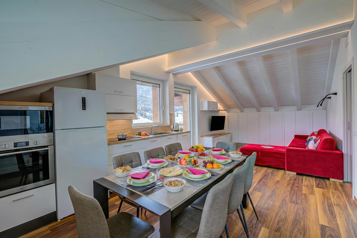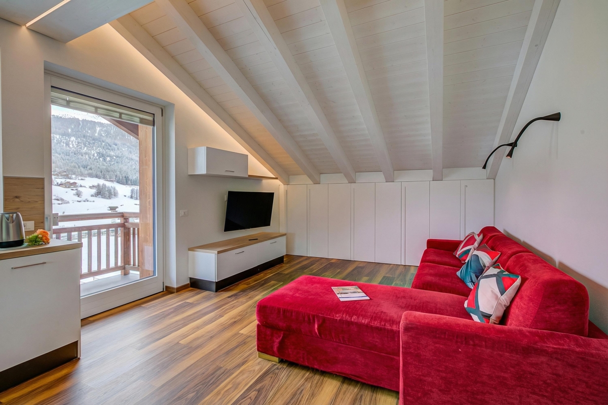Tucked under the eaves of a smart residence, this stylish apartment sleeps 6 people. Cosy in the winter months and airy in the summer, it is the ideal holiday retreat at any time of year.