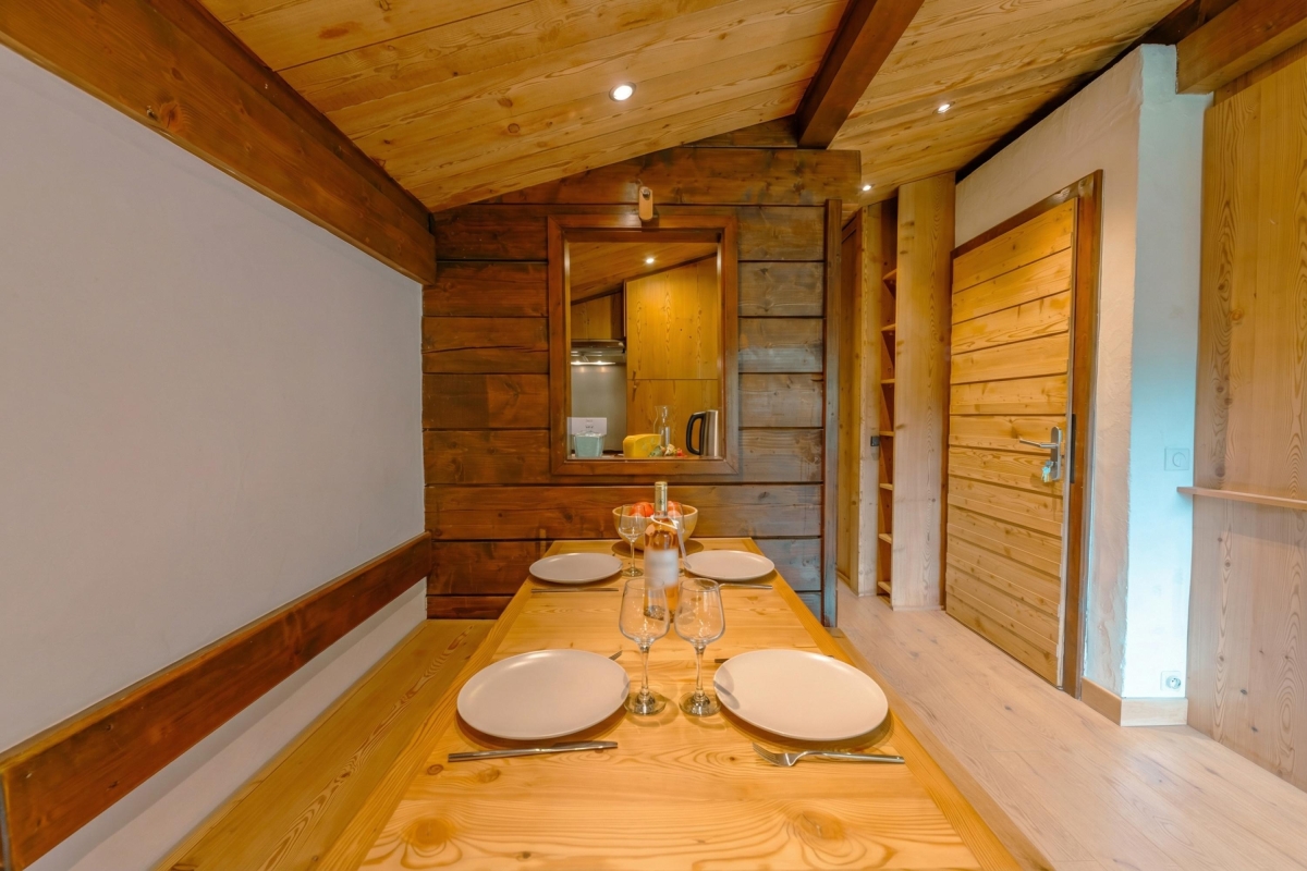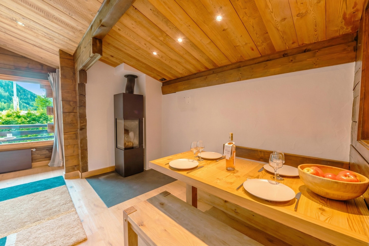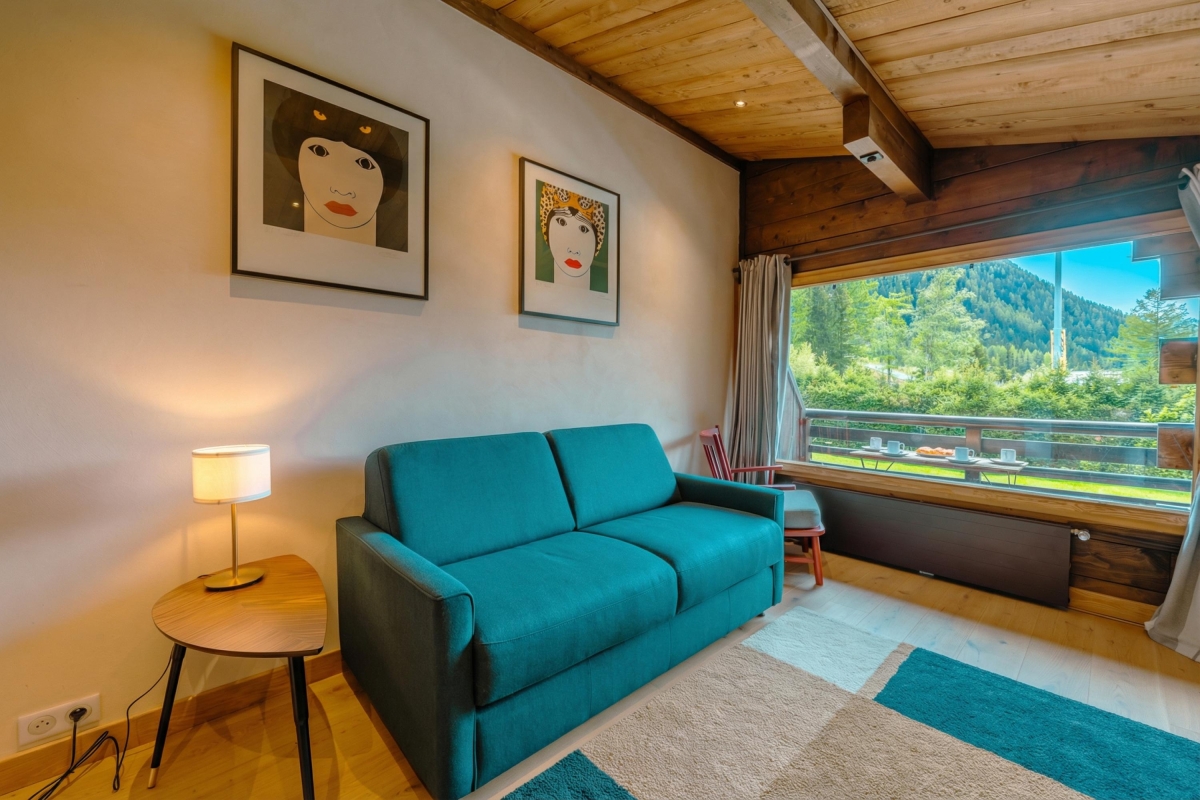 Situated just a stone’s throw from Les Grands Montets ski lift, this mountain-view retreat offers the ideal ski-in/ski-out accommodation for up to 4 guests. The second-floor apartment comprises a modern yet warm wood-panelled living room with a cosy dining set and a sun-soaked private balcony with open-air seating. The room is also complemented by a double sofa bed and a well-equipped open kitchenette centred around a toasty fireplace. A coffee machine, dishwasher, toaster, and fridge with freezer ensure a hassle-free self-catering holiday here.
