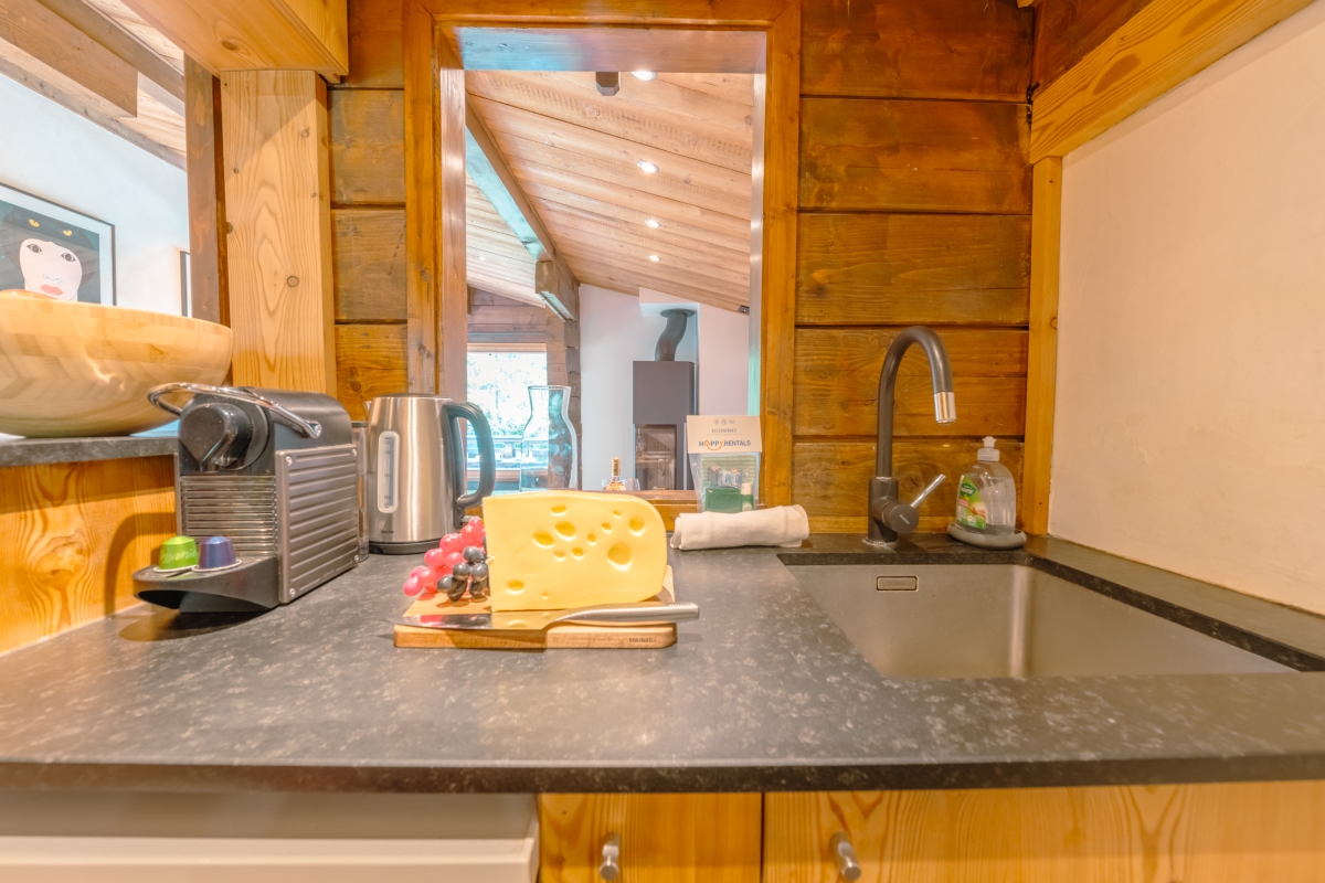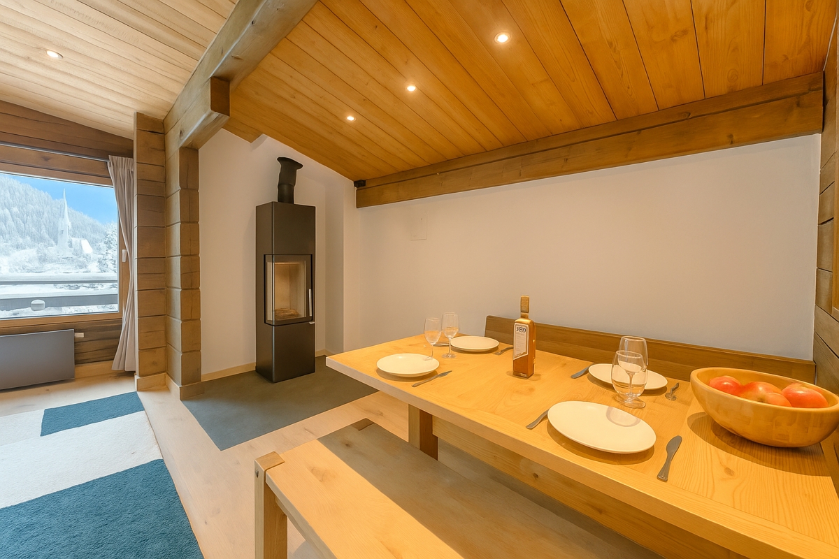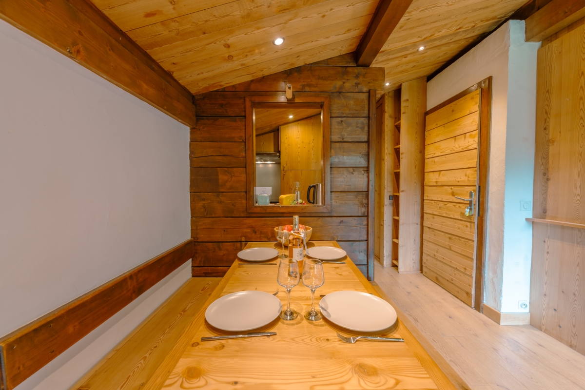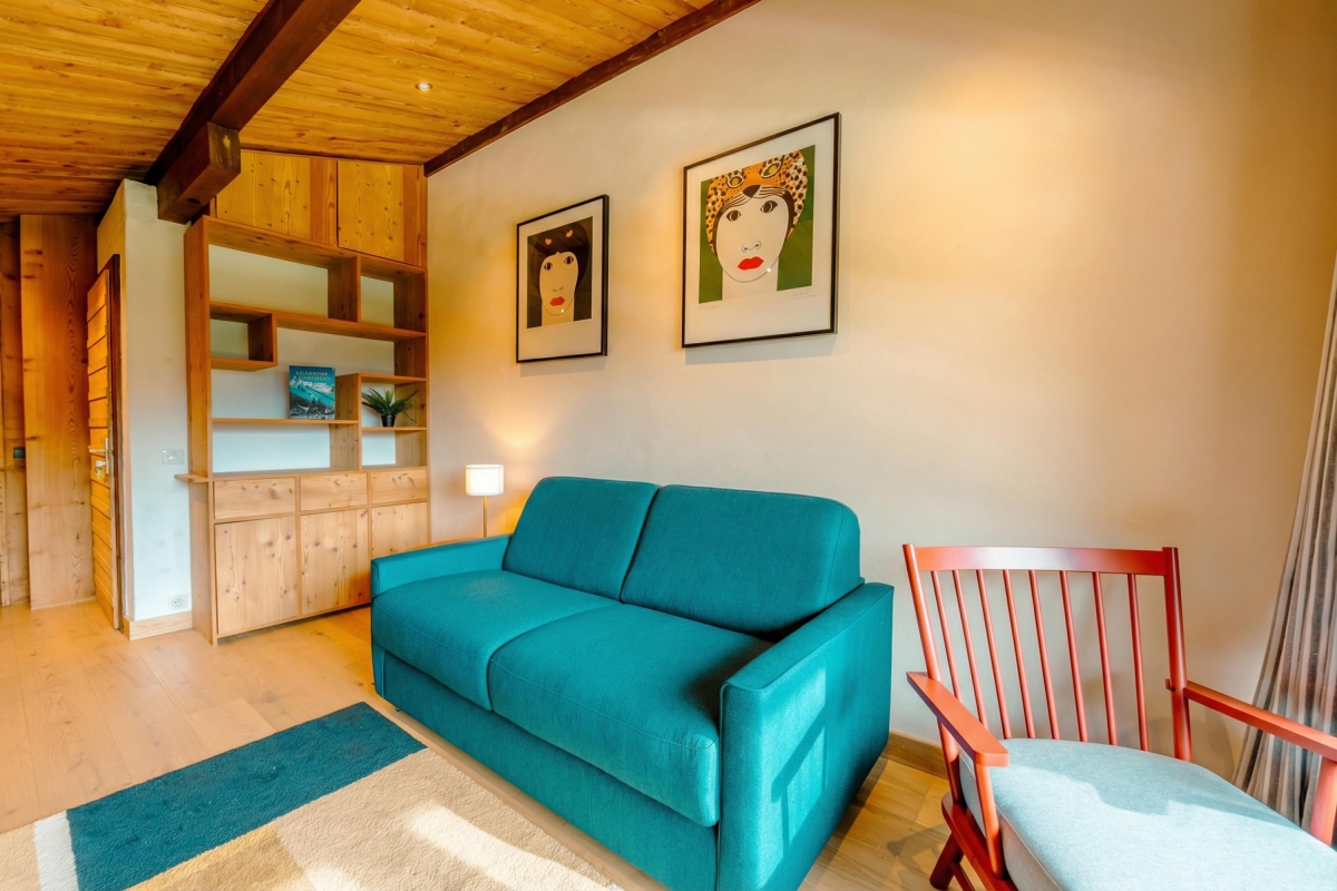 Situated just a stone’s throw from Les Grands Montets ski lift, this mountain-view retreat offers the ideal ski-in/ski-out accommodation for up to 4 guests. The second-floor apartment comprises a modern yet warm wood-panelled living room with a cosy dining set and a sun-soaked private balcony with open-air seating. The room is also complemented by a double sofa bed and a well-equipped open kitchenette centred around a toasty fireplace. A coffee machine, dishwasher, toaster, and fridge with freezer ensure a hassle-free self-catering holiday here.
