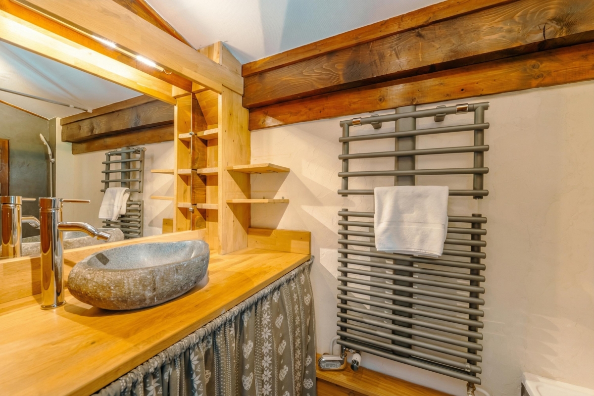 The apartment enjoys a peaceful natural setting with French eateries, restaurants, cafes, winter sports facilities and resort amenities of central Argentière only a 14-minute stroll/ 3-minute drive away. The Les Grands Montets Ski lift (perfect for competent skiers), the ski school and novice-friendly Lognan slopes are within a 4-minute walk away. Families will find the kid-friendly Panda Club 6 minutes walk away. The fashionable resort centre of Chamonix is 14 minutes’ drive away and the tree-top climbing Accro Adventure Park and rock climbing crag in Lac des Gaillands are both 17 minutes’ drive away.