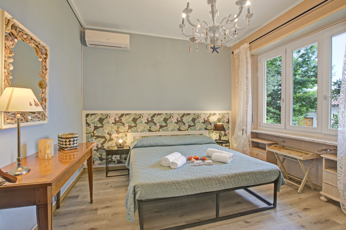 Bedroom 1: The bright and large bedroom has a double bed, a wardrobe and a table. It also has windows with scenic views outside.