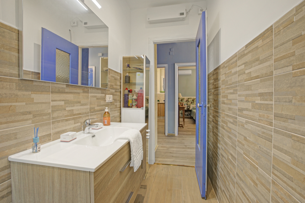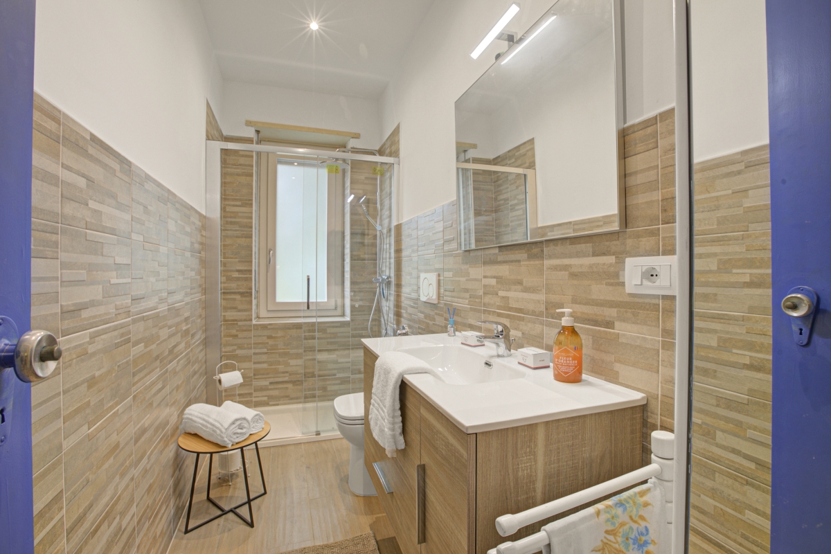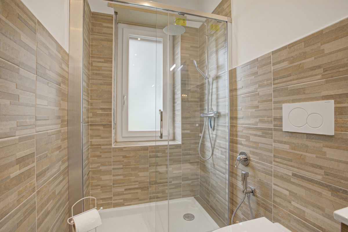 The bathroom is equipped with a shower, sink, a WC, and a bidet.