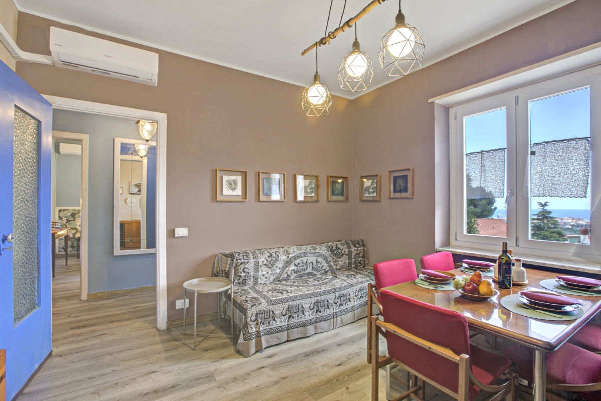 Located on the Ligurian Coast, this hillside apartment is just 5 minutes drive from the beach. For adventure, guests can explore the nearby hiking trails located at a drive of 6 minutes. Ideal for families with children, a park with water rides and supermarkets are in the same proximity. The shores and several beachside restaurants and bars to enjoy the nightlife, are within a driving distance of 12 minutes.