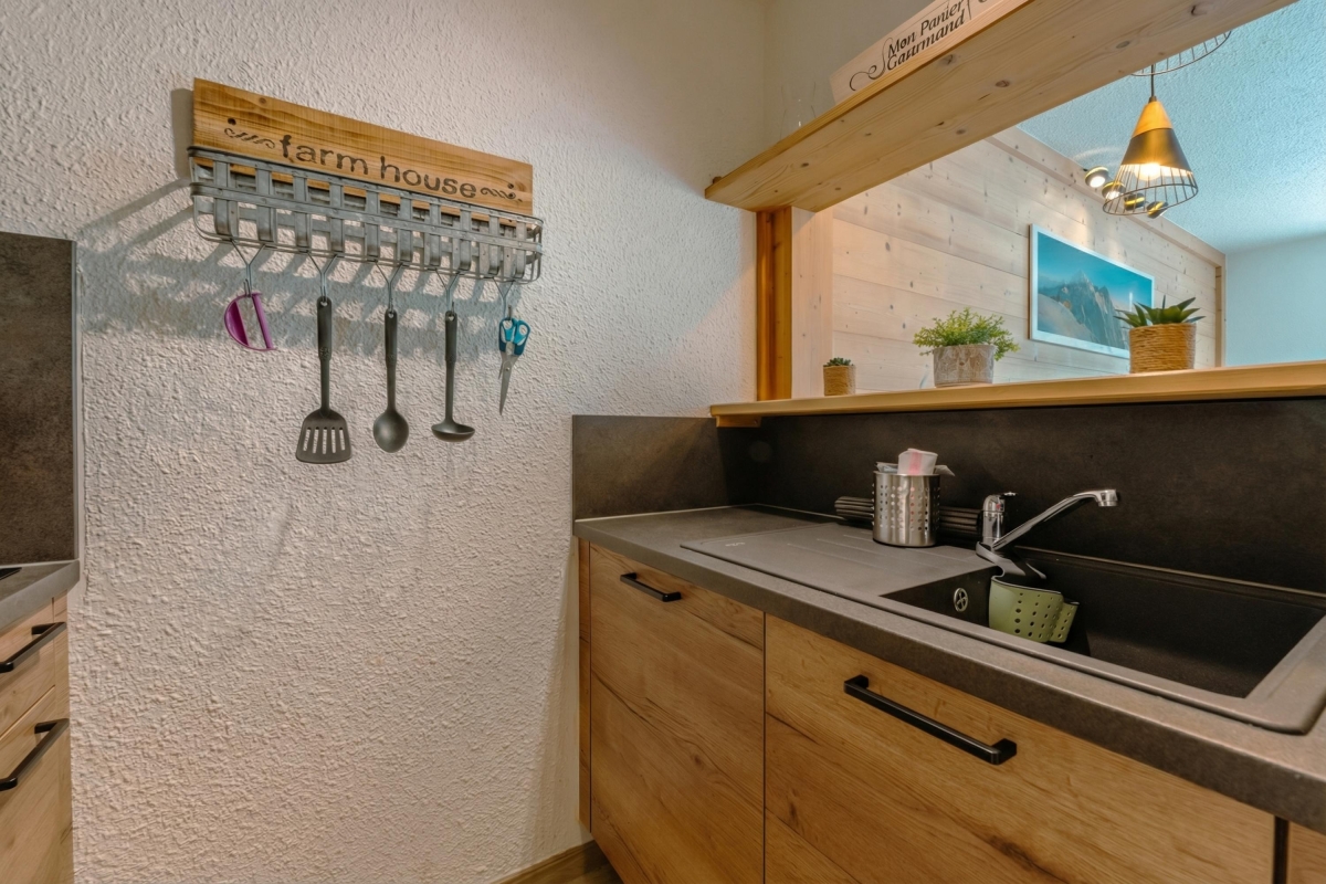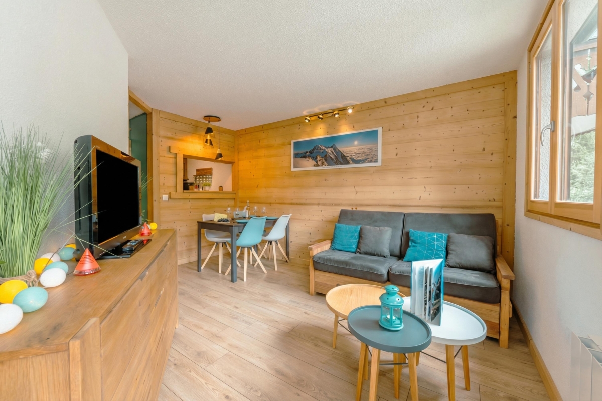 Located in Chamonix Sud, this timeless one-bedroom apartment offers a carefree ski break with mountain views. The bright living room features a double sofa bed, flat-screen TV, and access to a private balcony with a bistro dining set for 2. Guests can enjoy a well-equipped kitchenette with a dishwasher, microwave, coffee machine, toaster, and fridge, plus a service hatch to the dining area for convenient meals. Situated on the 1st floor, the residence provides lift access and ski storage.