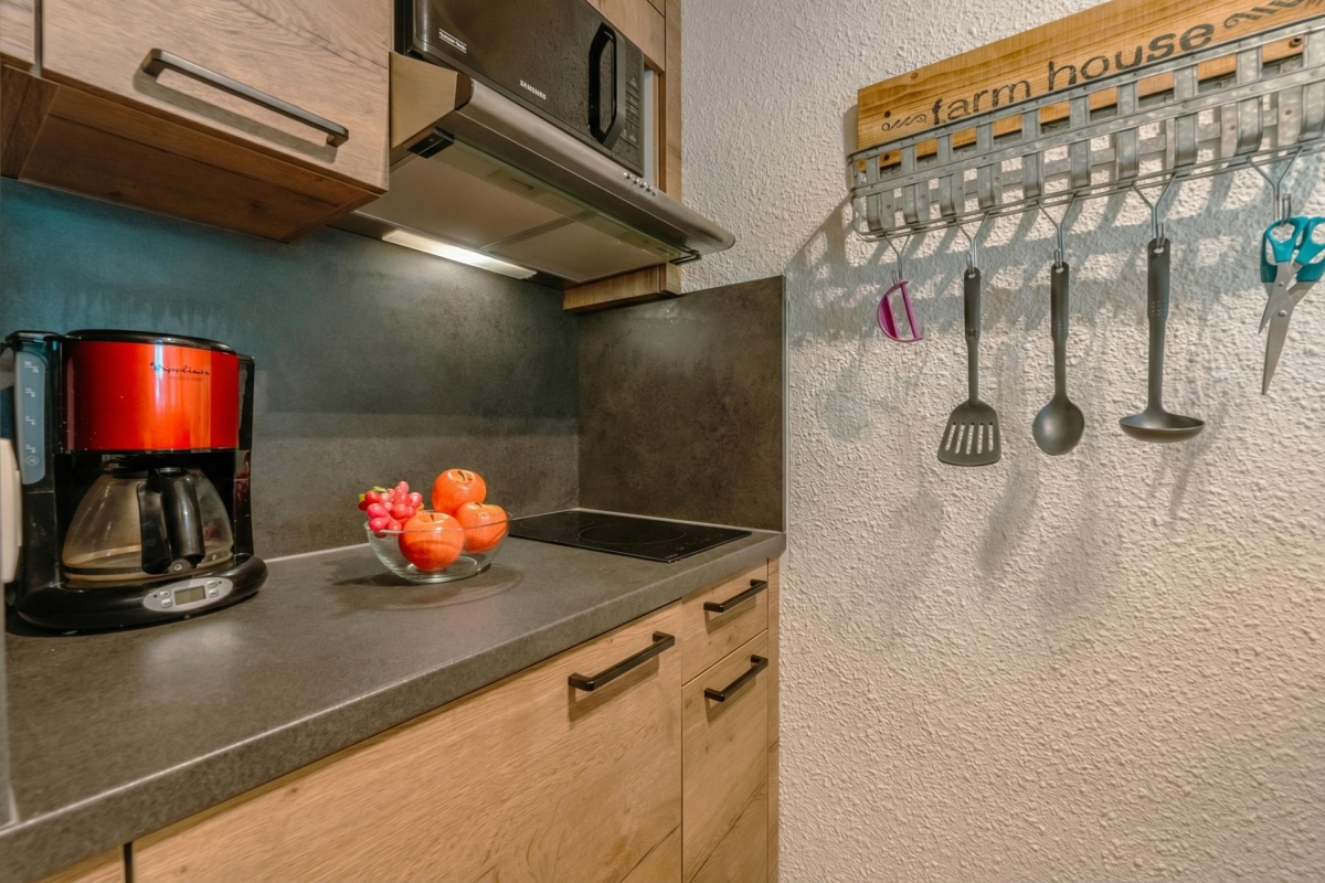 • Lift • Flat screen TV • NO WIFI • Separate kitchenette • Drip Coffee machine • Hairdryer • Ski locker • Pets considered (upon request) • Private balcony • Free public parking (parking spaces cannot be guaranteed) but car not necessary • Parking height - 1.85 m • Washing Machine • Dishwasher