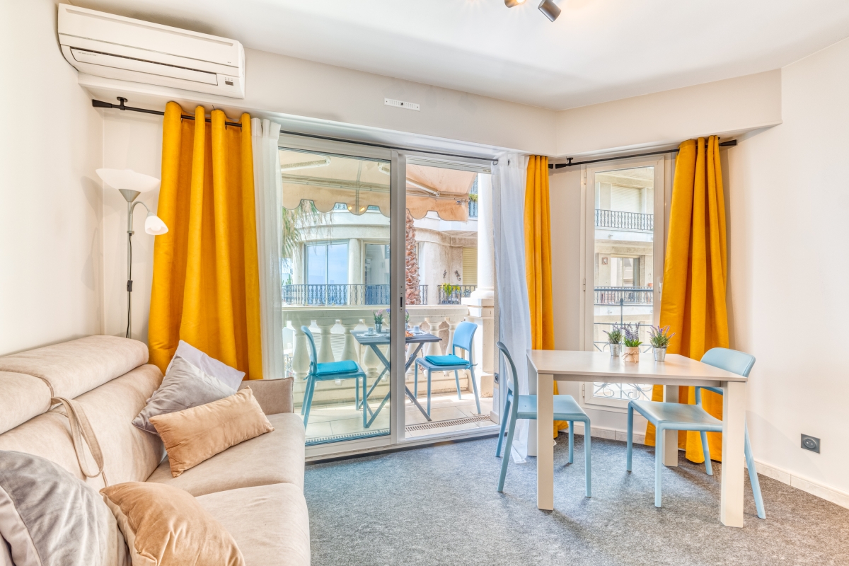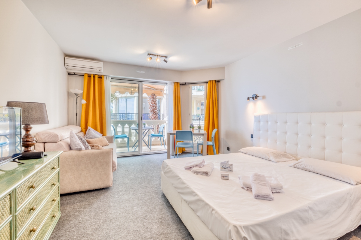 Enjoy stunning views of the Mediterranean Sea from this balconied seafront studio apartment in Menton.
