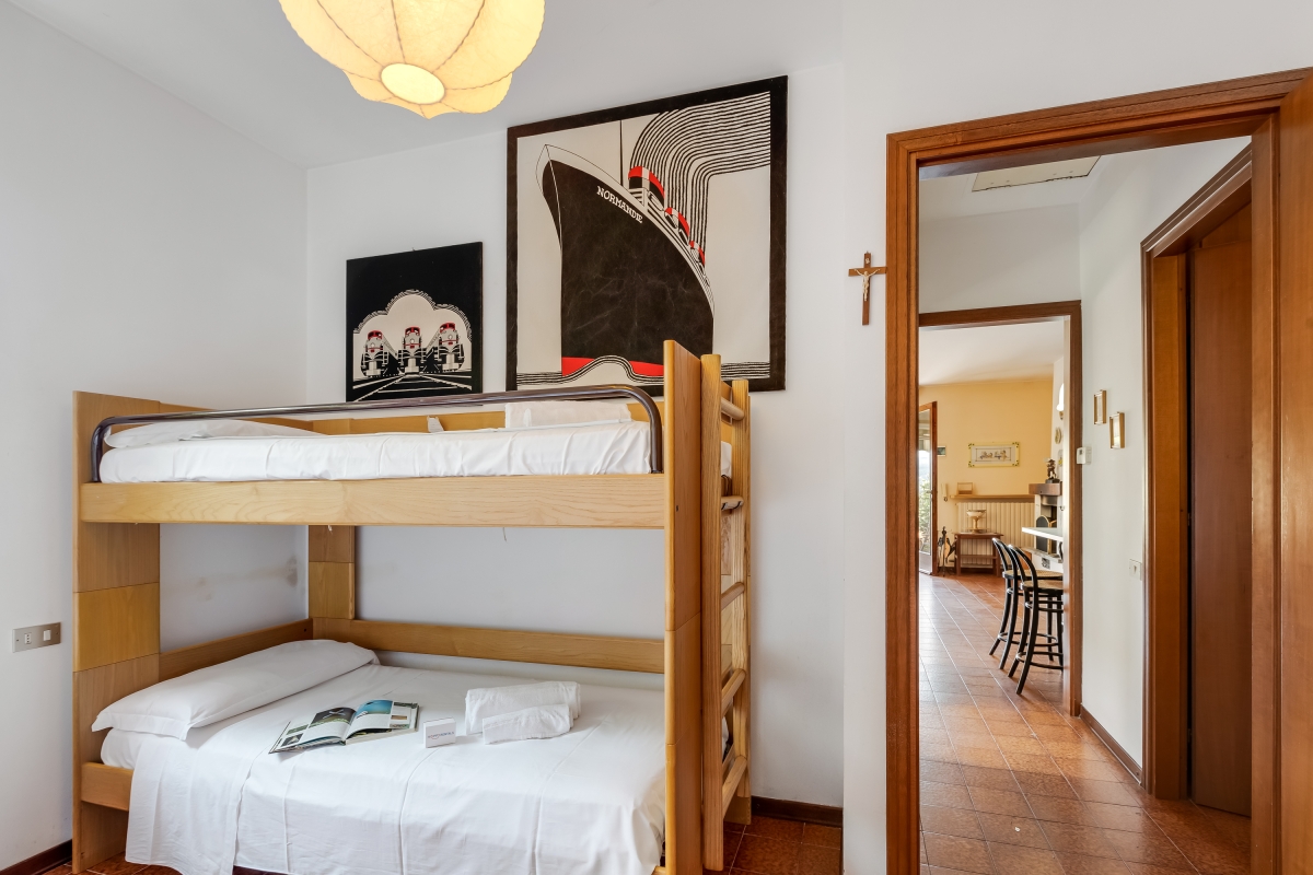 Bedroom 2: The second bedroom is furnished with bunk beds, a single bed and a wardrobe.