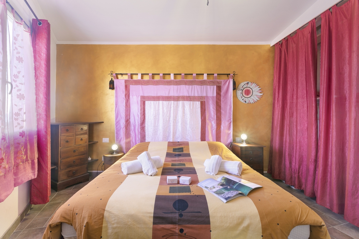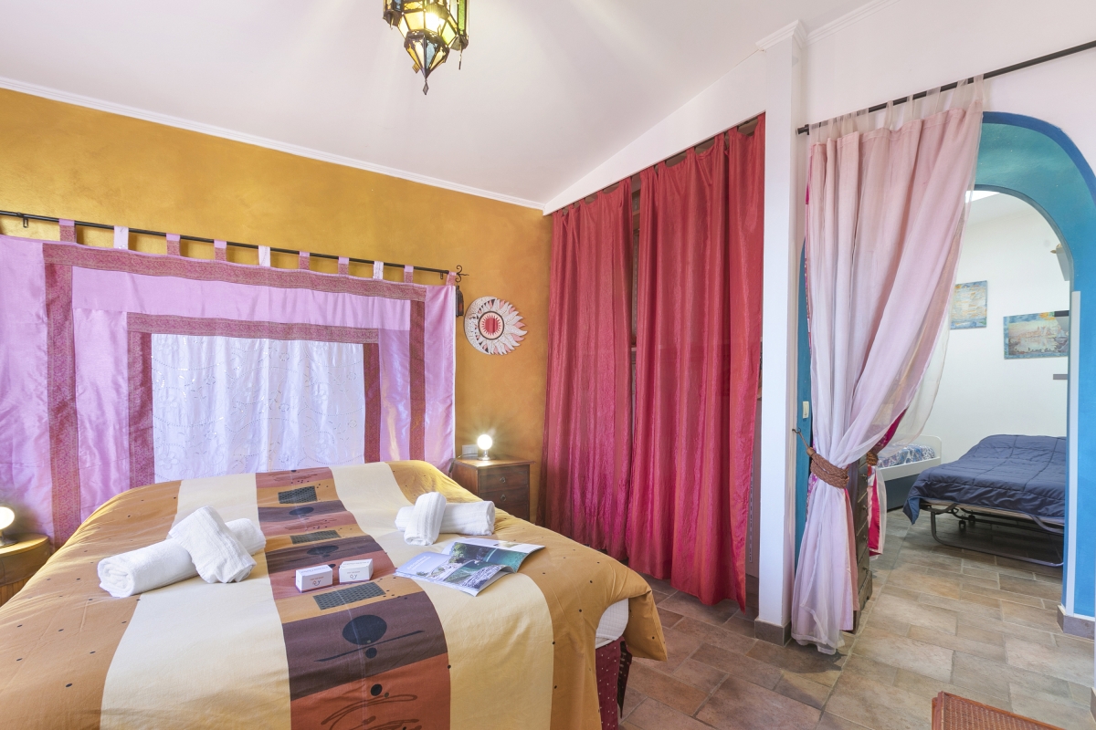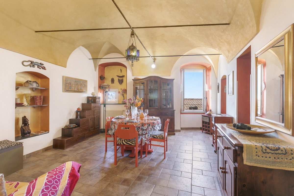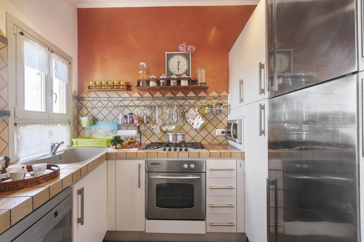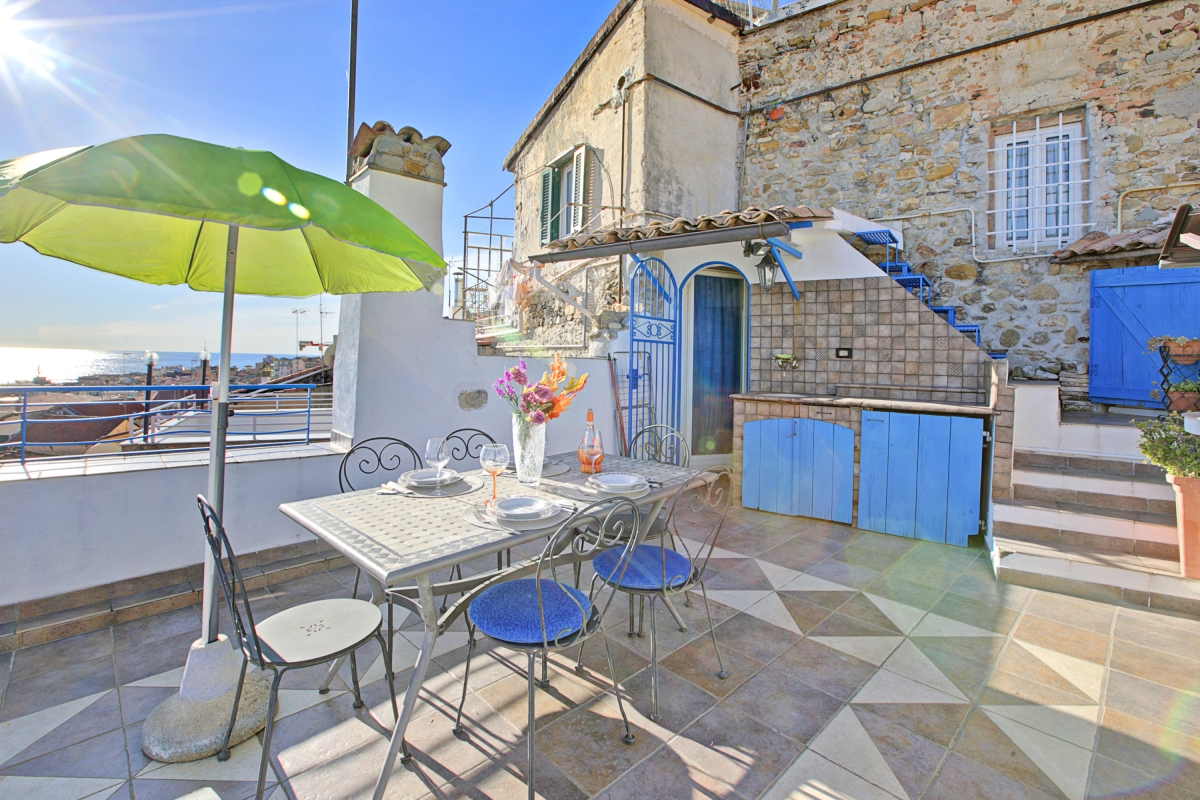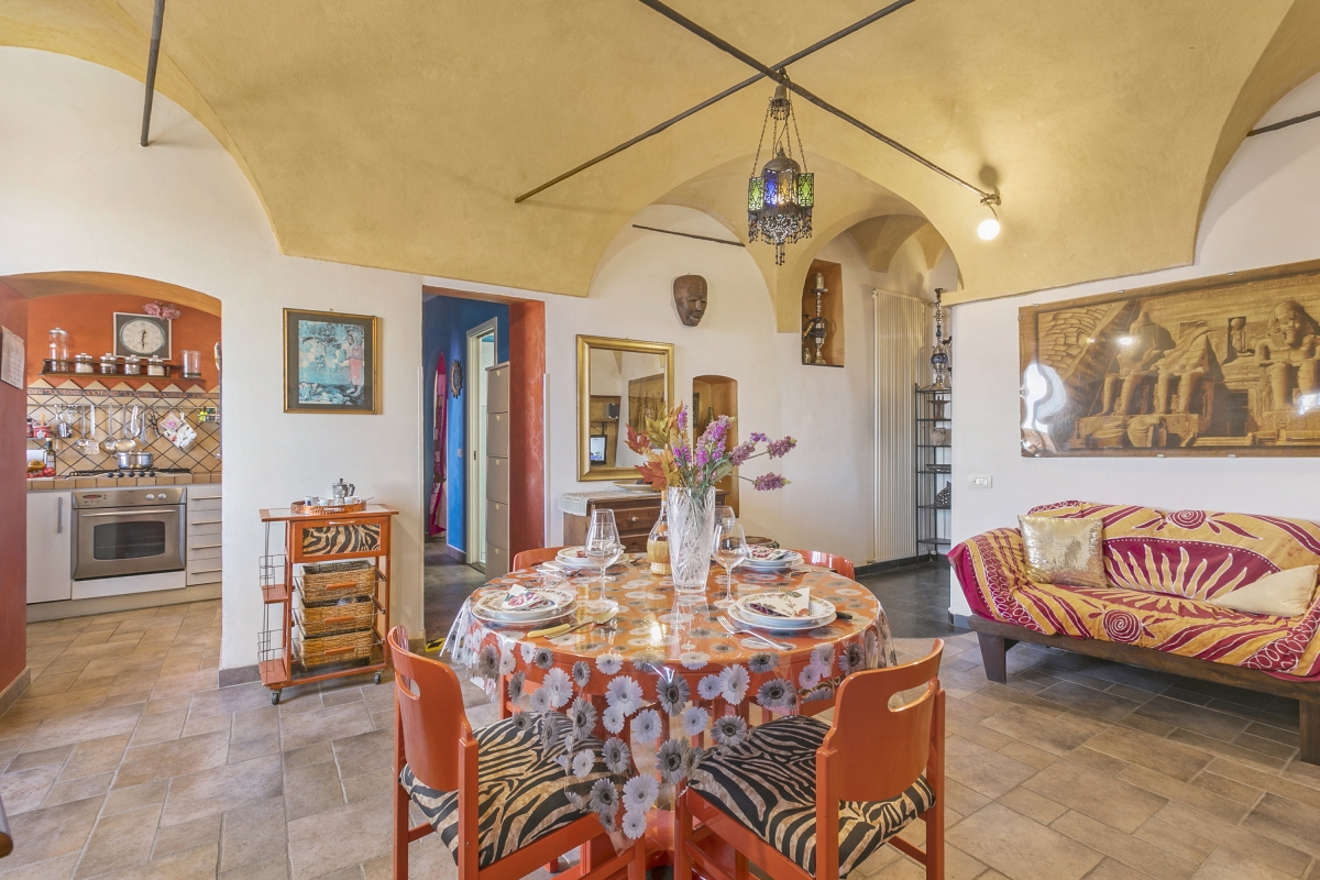 Located near the town center, this apartment is nestled in the quiet neighbourhood of Sanremo. A two-bedroom apartment on the third floor, it can comfortably host up to 4 guests. Upon entering, you will find a simple living room designed with medieval-style cave shelves and furnished with a sofa, a chest of drawers, a showcase and an inviting dining table set.