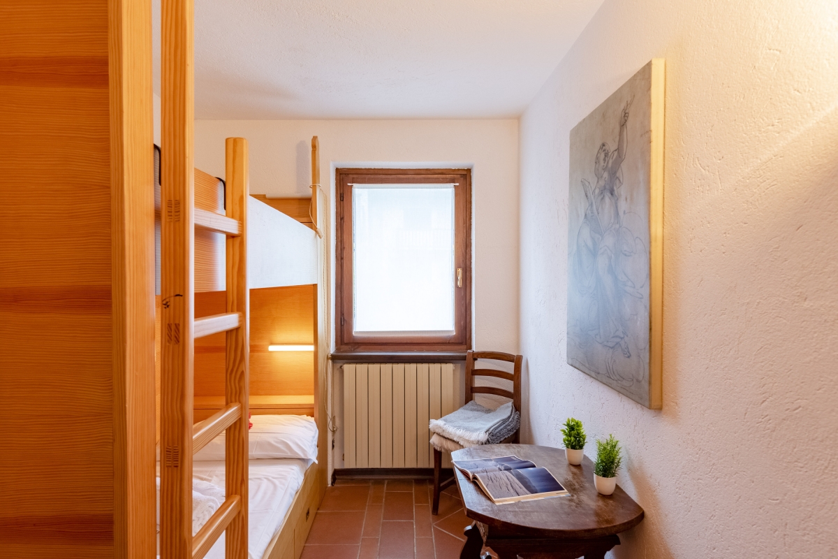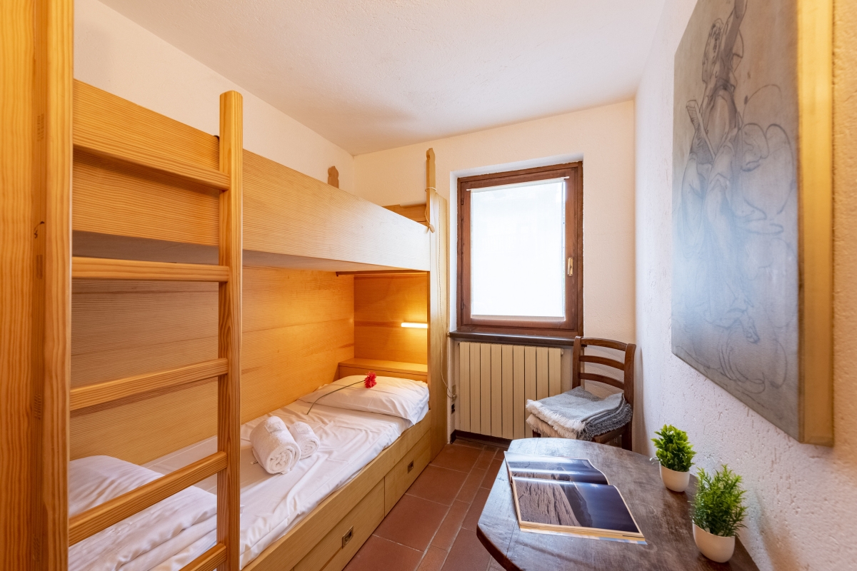 Bedroom 1: The bedroom is furnished with bunk beds, a desk and a wardrobe