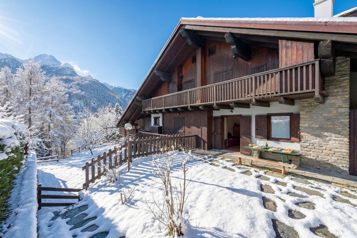 The apartment is nestled at the foot of Mont Blanc, in the village of Verrand within the Courmayeur municipality in northwestern Italy. The Courmayeur Mont Blanc cable car is a 5-minute drive / 20-minute walk away. The ideal base for winter sports enthusiasts, the resort offers a wide range of slopes suitable for all levels. Courmayeur is famous for its off-piste opportunities, particularly in the Vallée Blanche.