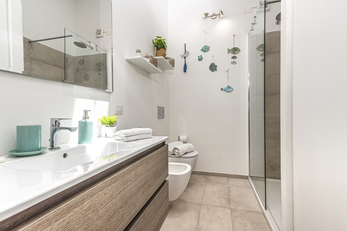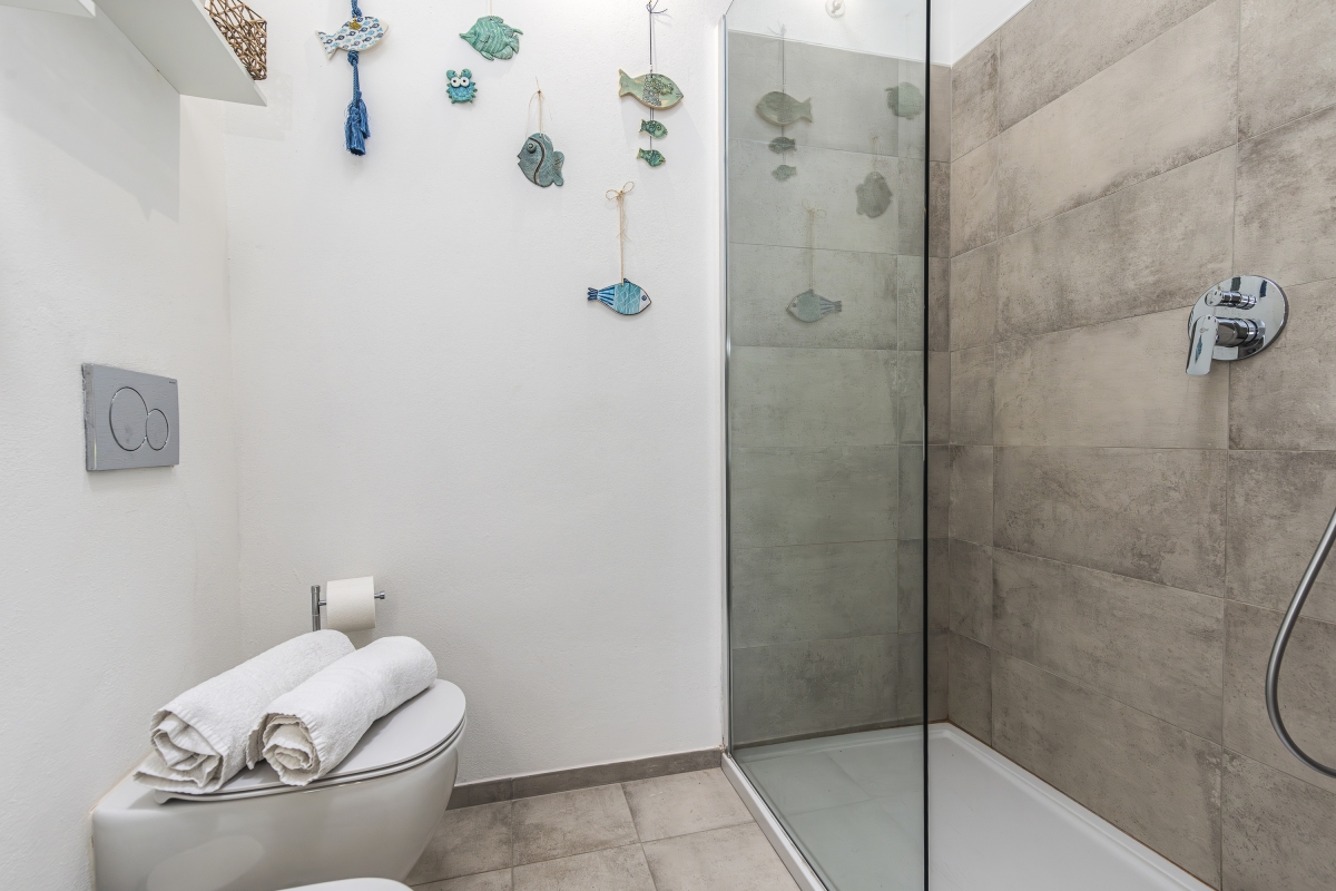 This bathroom features a walk-in shower, bidet, washbasin, and WC.