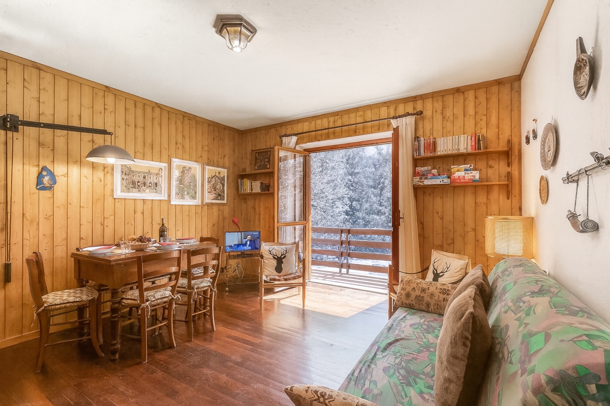 A contemporary and family-friendly retreat in the Italian Alps, this stylish apartment with warm wooden interiors, offers a cosy living area complete with a flat-screen TV, a book library and comfortable seating. The well-equipped kitchenette with modern appliances and a charming dining space makes it perfect for shared meals. Large windows and a private balcony provide stunning mountain views, making it an ideal spot to unwind in the natural beauty. Plus, guests also have access to a tranquil shared garden for sun-soaked relaxation.