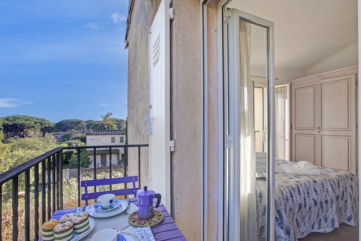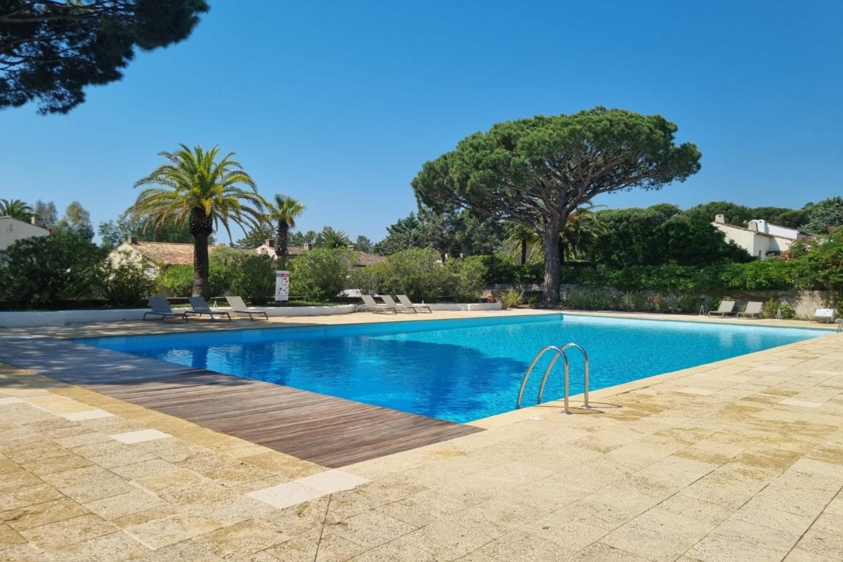 This retreat in Ramatuelle is a charming antique studio apartment nestled in lush greenery, just a 6-minute walk from the famous Pampelonne Beach. Situated on the first floor, this cosy apartment features a room with a small balcony ideal for 2. Guests can enjoy a shared pool surrounded by sun loungers, perfect for relaxing in the sun, as well as access to a fitness center and a peaceful outside area.