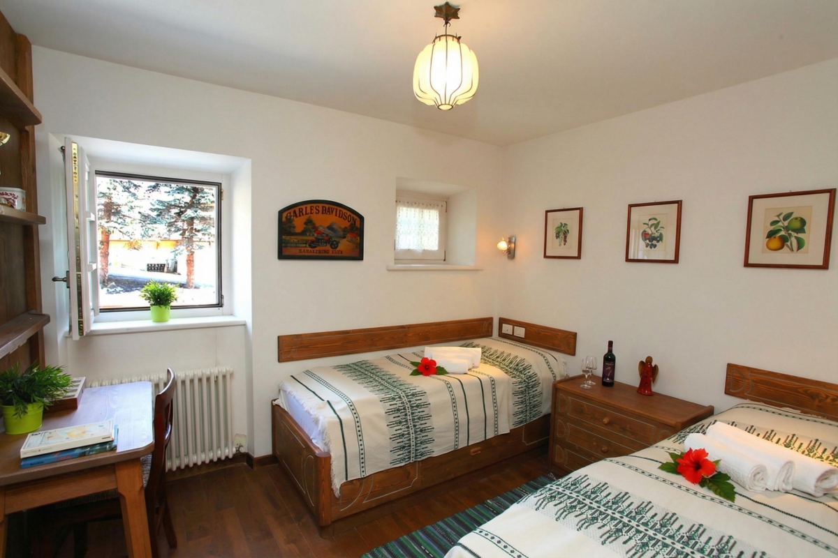 The sleeping accommodation to this duplex chalet retreat is perfect for family and friends. Couples can easily unwind within the serenity of their own double bedroom. A second bedroom furnished with two single beds offers a lovely setting for children to be accommodated, with a desk and charming views to hand.