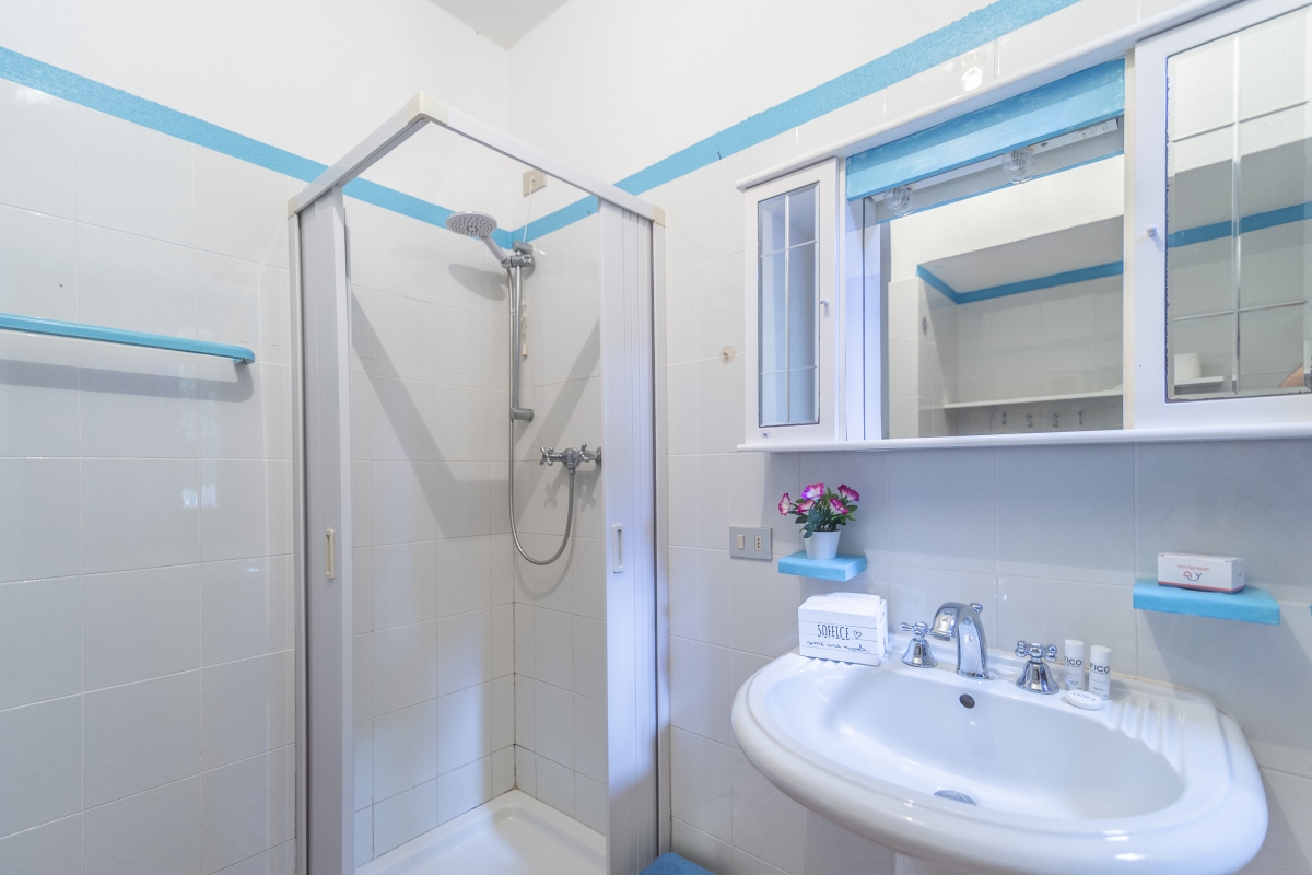 Relax on the two cosy terraces, where you can enjoy meals and aperitifs in total peace and tranquillity. The private garden blooming with bougainvillaes is another perfect spot for relaxation with a good book or simply in the company of loved ones. Inside, you will find a full kitchen equipped with a modern dining set-up for 4 and all the essentials needed for meal preparation: including a Moka coffee machine, dishwasher, microwave, fridge and freezer. The living room features a cosy double sofa and flat-screen TV, perfect for unwinding after a day of exploring the stunning surroundings.