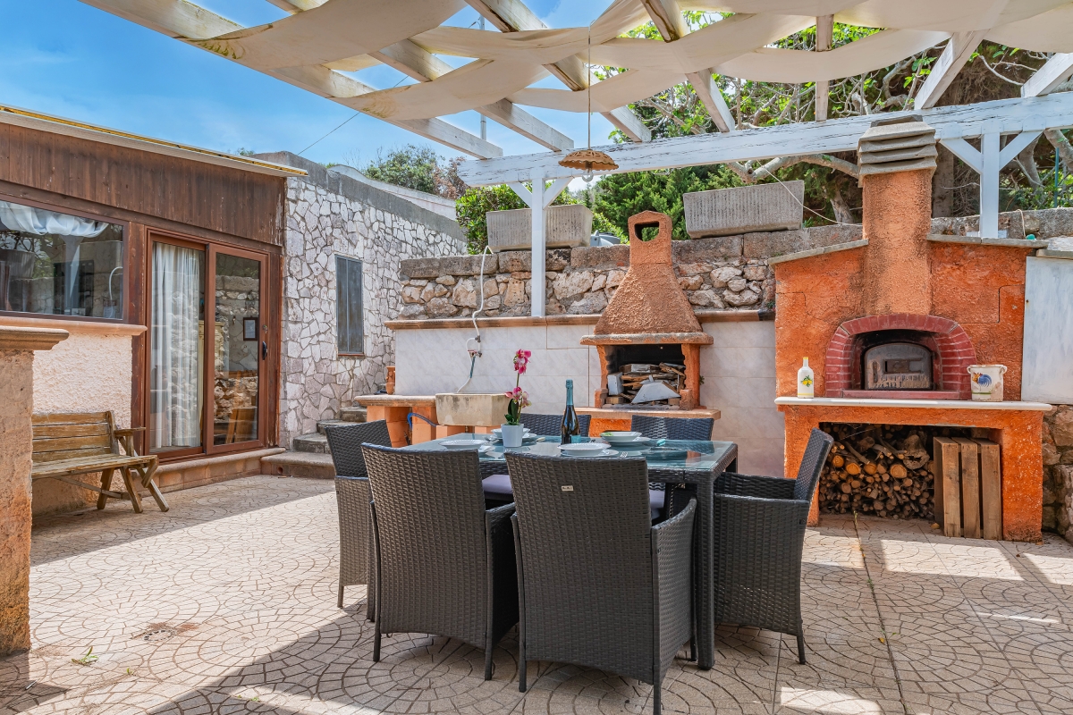 To the left, you'll find the outdoor dining area overlooking the sea, with a large table, and a BBQ. This shaded area is perfect for enjoying al-fresco meals. Relax on the sun loungers at the rear of the private garden, or take a stroll to the rocky beach accessible from the garden. This area of Salento is perfect for spectating beautiful sunsets.