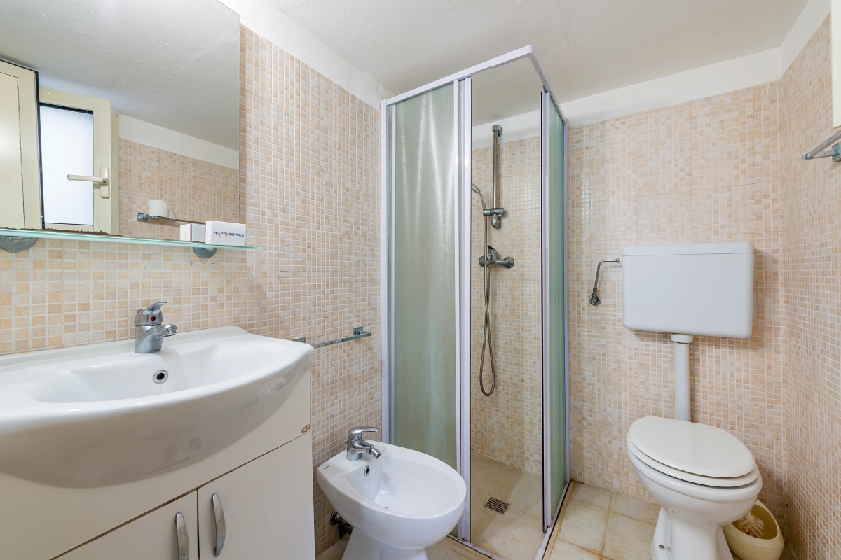 From the verandah, you can access the rustic bedroom with a double bed, wardrobe and an ensuite bathroom featuring shower, bidet and WC.