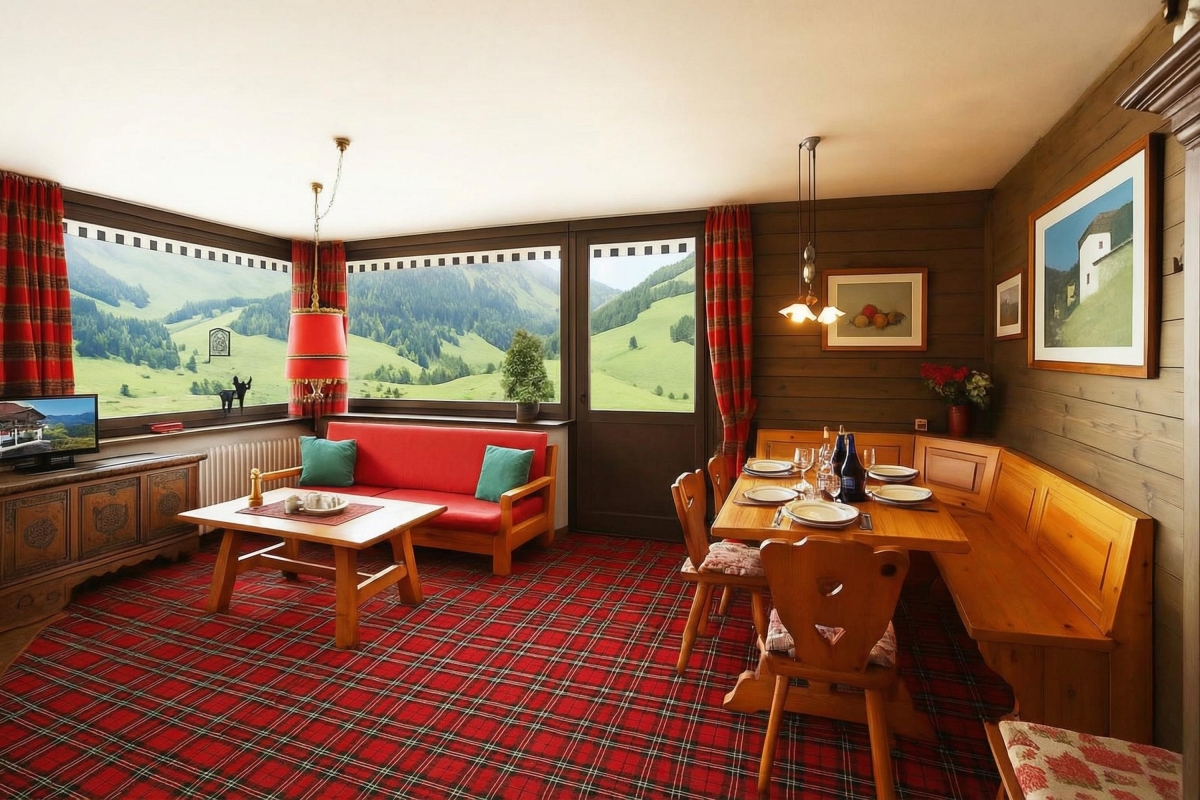 Internally the 70sqm apartment has been furnished in a romantic Alpine style, with all the mod cons to hand to ensure guests can enjoy relaxing here after a day on the slopes.