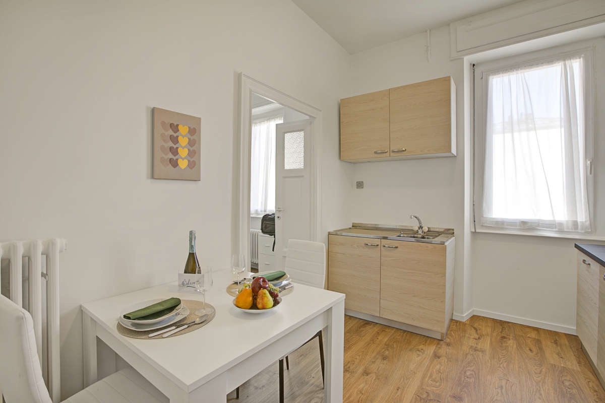This one-bedroom holiday home for 2 enjoys a fantastic location on the third floor and proximity to all essential self-catering amenities and the vibrant and charming downtown Lugano. Inside, the modern apartment has a bright living room with a wooden dining table and a Smart TV. This is complemented by a well-equipped kitchenette to make sure you have everything for a comfortable self-serviced holiday. A coffee machine, microwave, fridge with a freezer, a toaster, and an oven are available for your use.