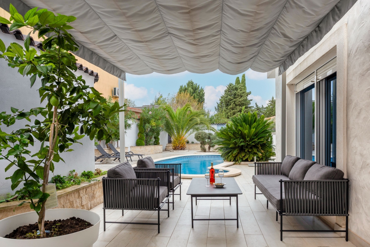 The villa enjoys access to the beaches along the Adriatic Sea, a 5-minute drive. To relax and cook at home, supermarkets are just a 5-minute drive away, or a variety of restaurants can be reached within a 10-minute driving radius. For sports enthusiasts, the tennis court, beach volleyball court and a local sports club are a 2-5-minute drive, ensuring easy access to a range of athletic facilities.