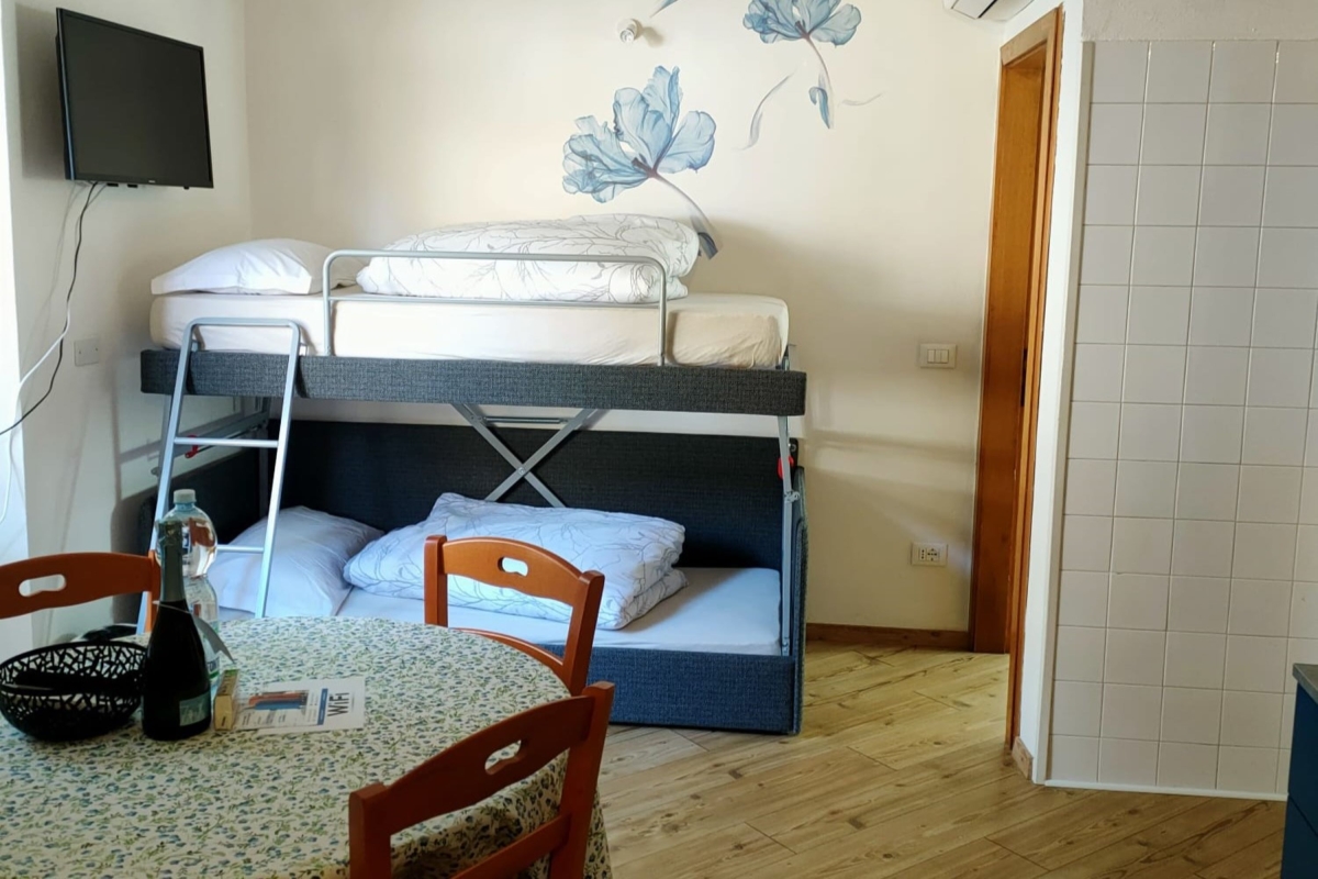 Inside, the apartment is furnished to ensure a homely yet modern atmosphere. The kitchen has a microwave, oven, induction hob, and moka coffee machine, making meal preparation a breeze. The dining area accommodates four, perfect for cosy meals. For leisure, unwind on the sofa while enjoying modern comforts such as free Wi-Fi and a Smart TV.
