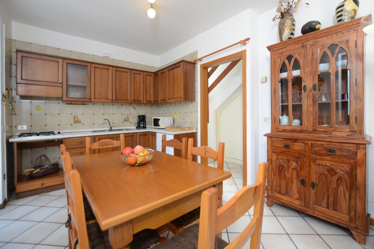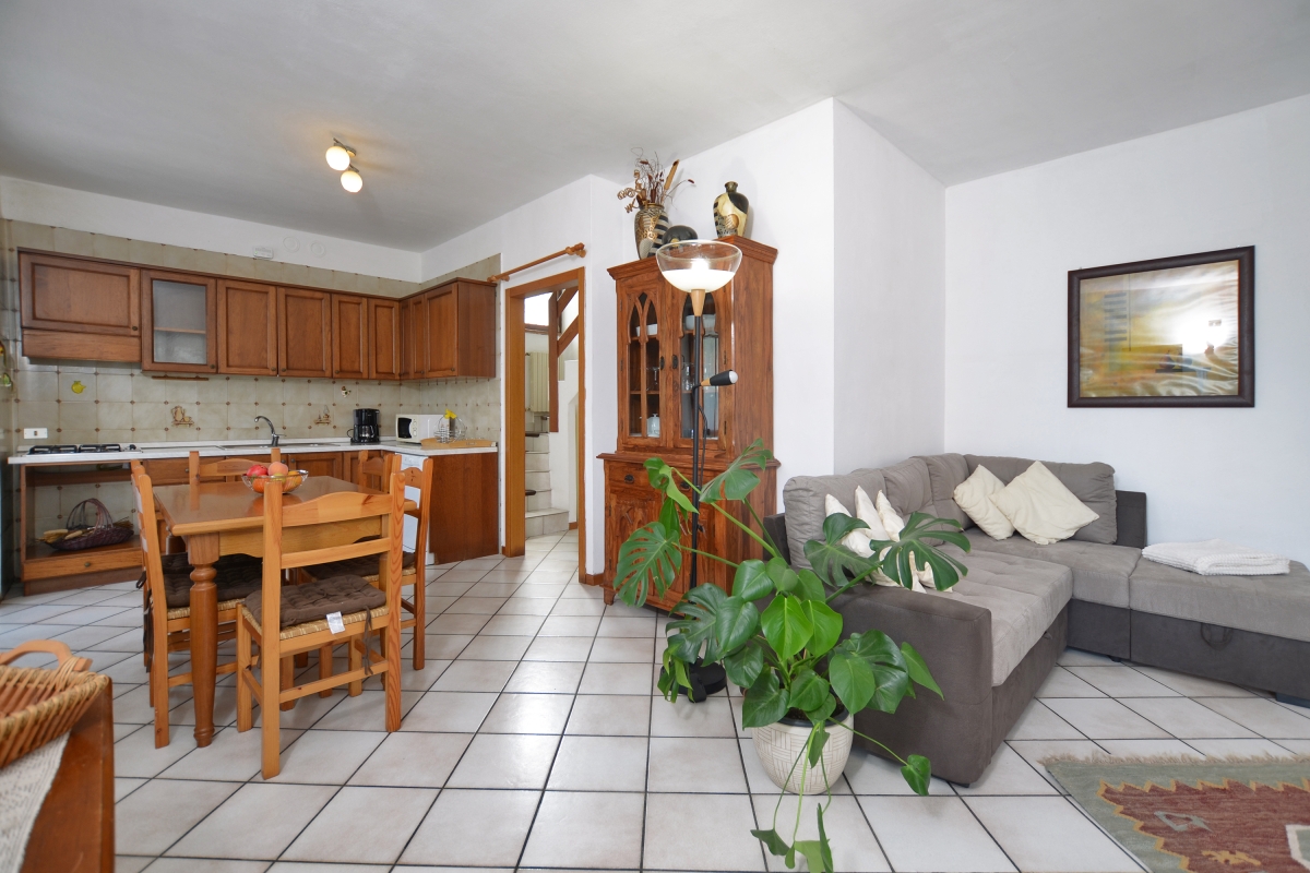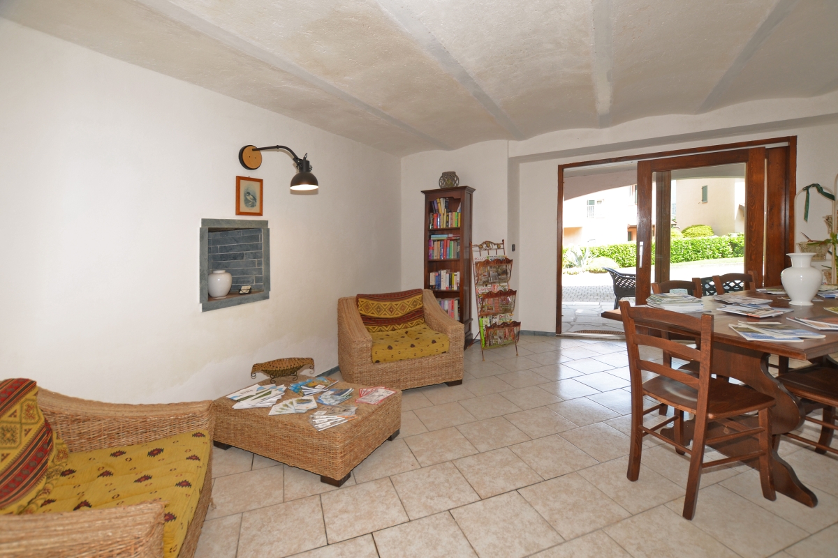 The large shared gardens are delightful and very well-kept, with open lawns and a children’s play area. The shared swimming pool (unheated) has sun loungers for guests to use after a refreshing dip. Next to the apartment is a communal loggia seating area where guests can meet up and where there is Wi-Fi coverage.