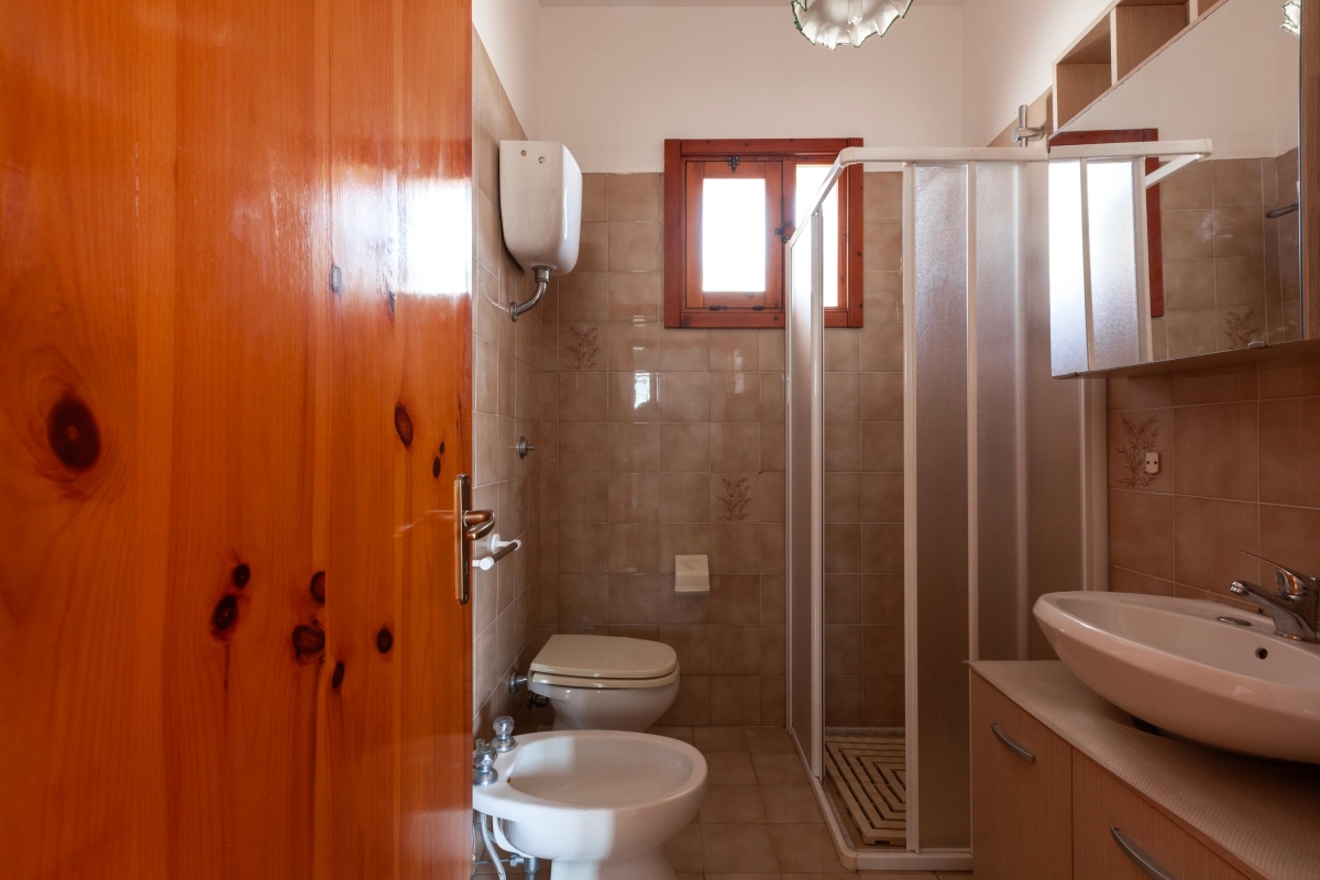 The bathroom is equipped with a bidet, shower, and WC. Additionally, there is an external bathroom complete with a shower, a bidet and toilet.