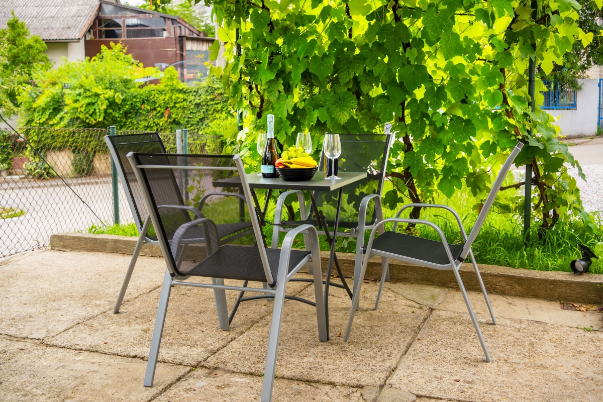 Outside there is a pretty terrace with vines where guests can enjoy a glass of wine or cup of coffee.
