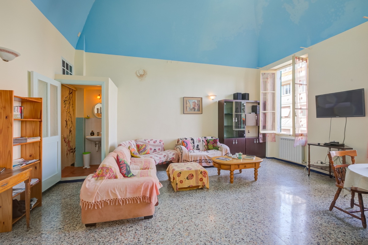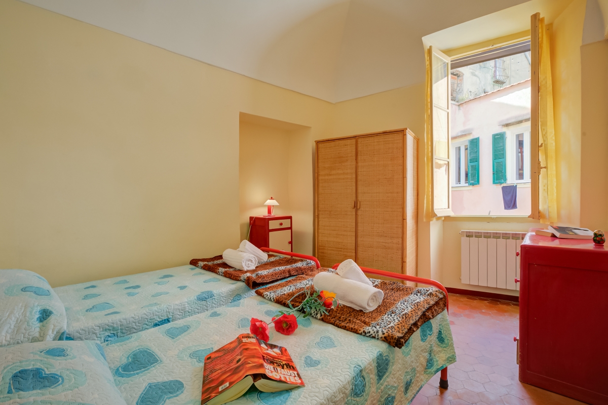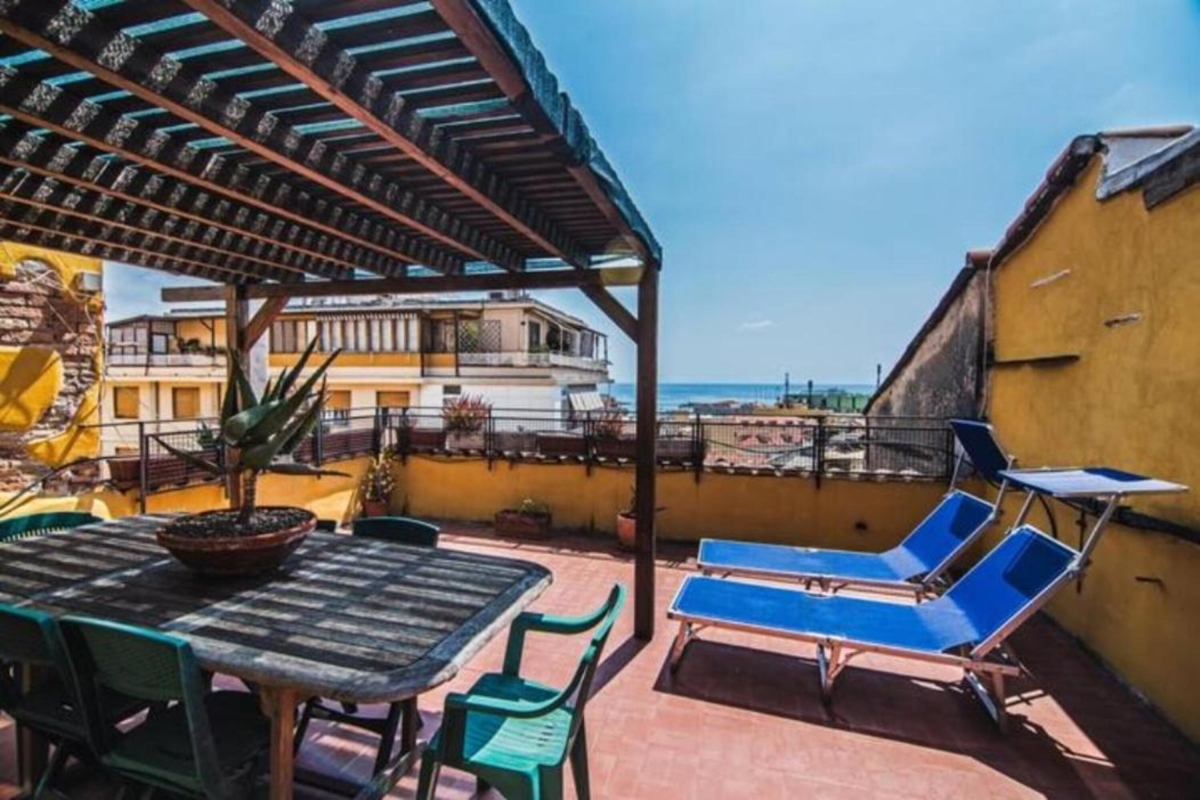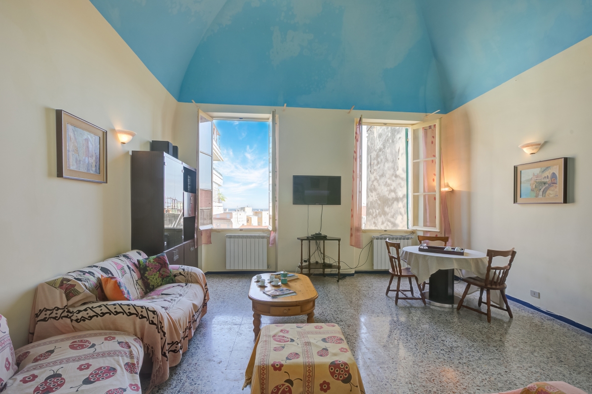 Nestled along the Ligurian Coast in Sanremo, this family-friendly apartment is located near the historic centre and the scenic Porto Vecchio. A three-bedroom apartment on the second floor with a private balcony and a terrace is ideal for hosting a group of 6. This home welcomes you with its warmth and vibrance in the living room illuminated with natural light. It is a bright and spacious living area with a sofa, a flat-screen TV, a showcase, a bookshelf and a dining table set. There is a fully equipped kitchen accessible from here that provides utilities like a cooker hob, a coffee machine, an electric kettle, a microwave, a dishwasher, an oven, a toaster and a fridge with a freezer. A separate dining table in the kitchen and access to the balcony provide an ideal setting for enjoying a perfect meal with your loved ones.