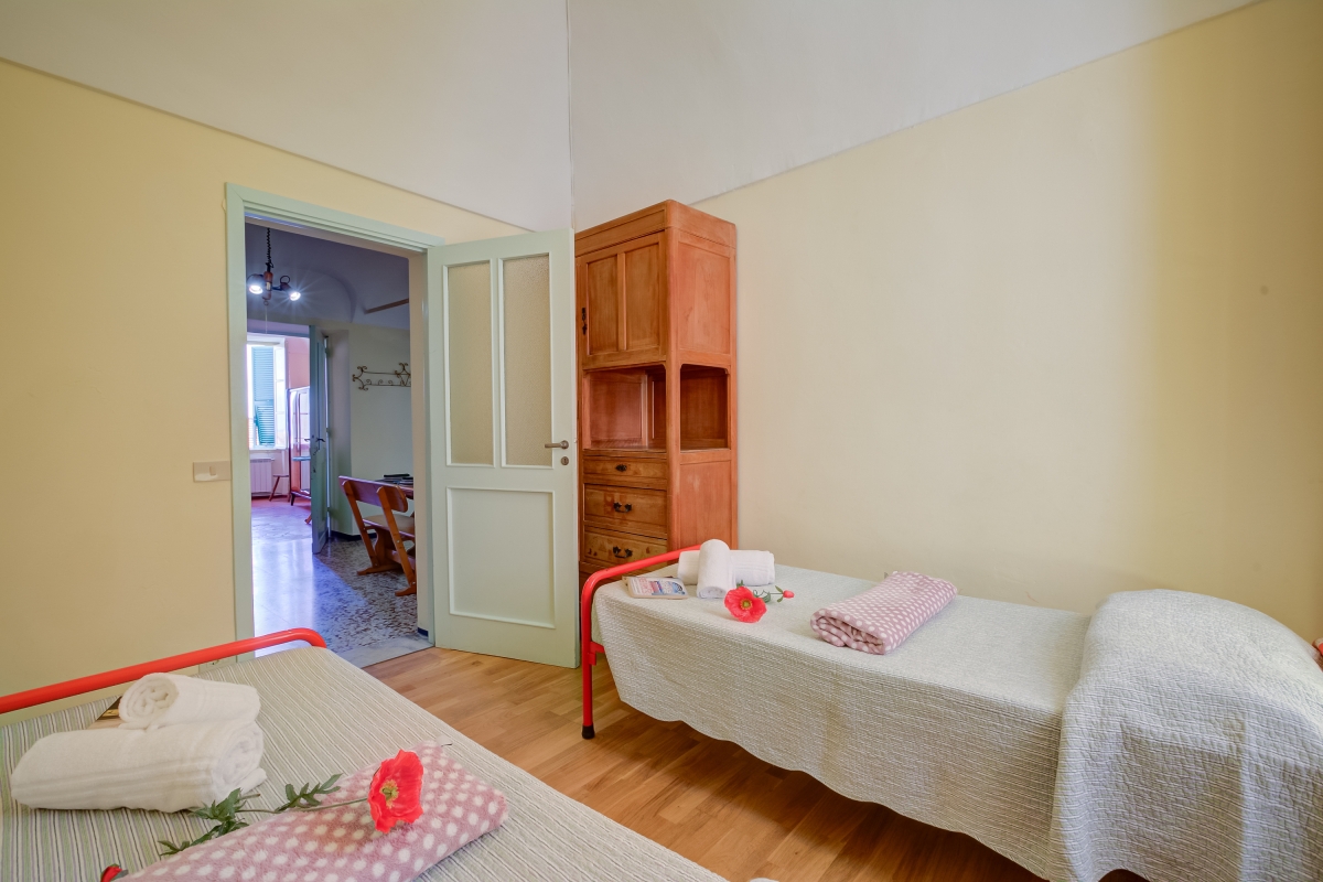 Bedroom 3: This room has 2 single beds and a wardrobe.
