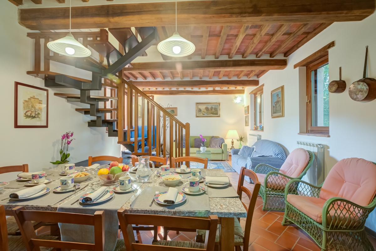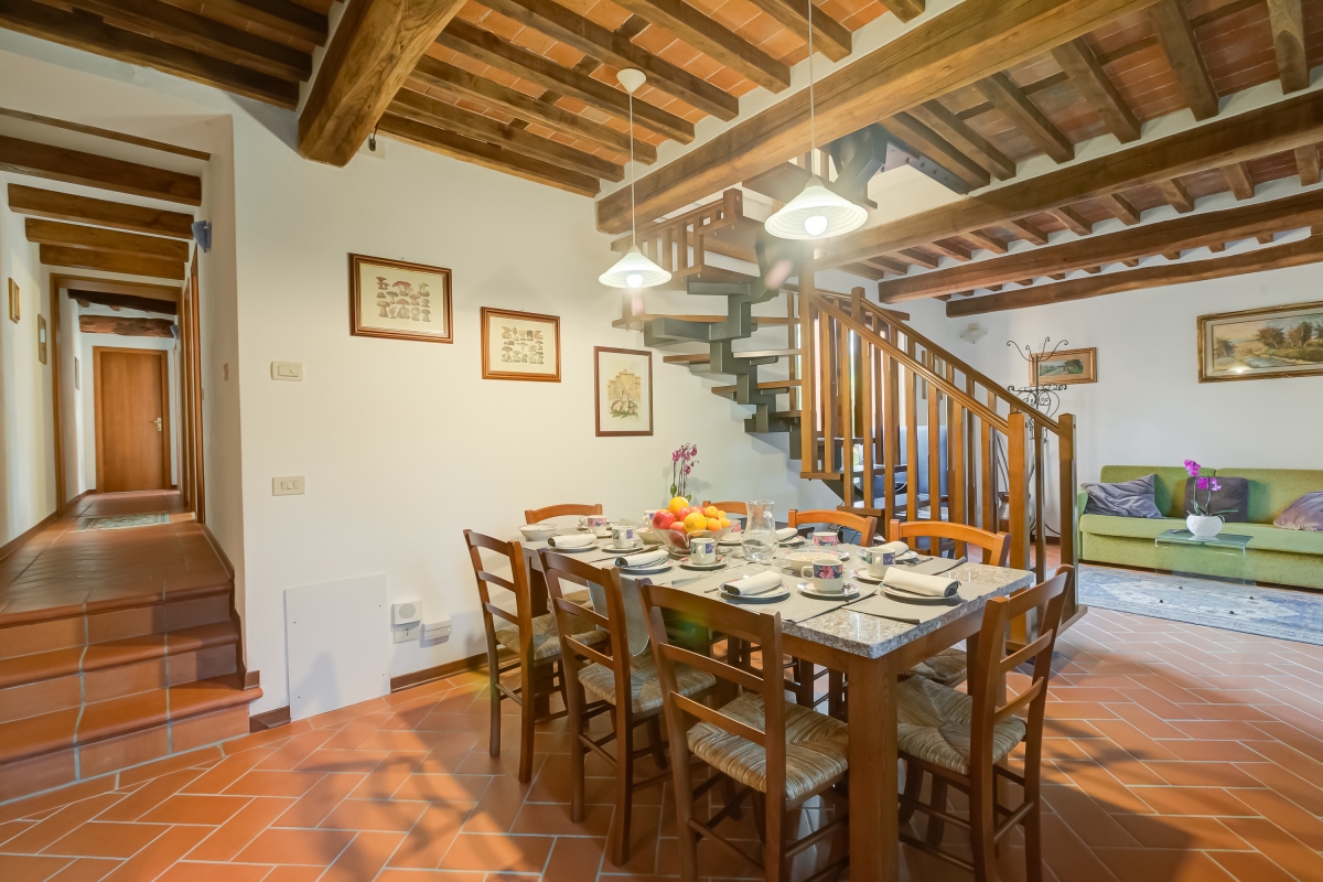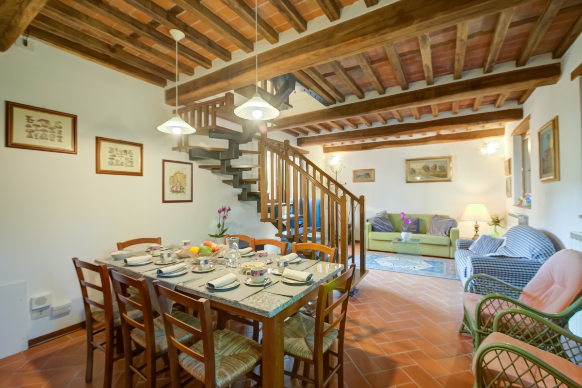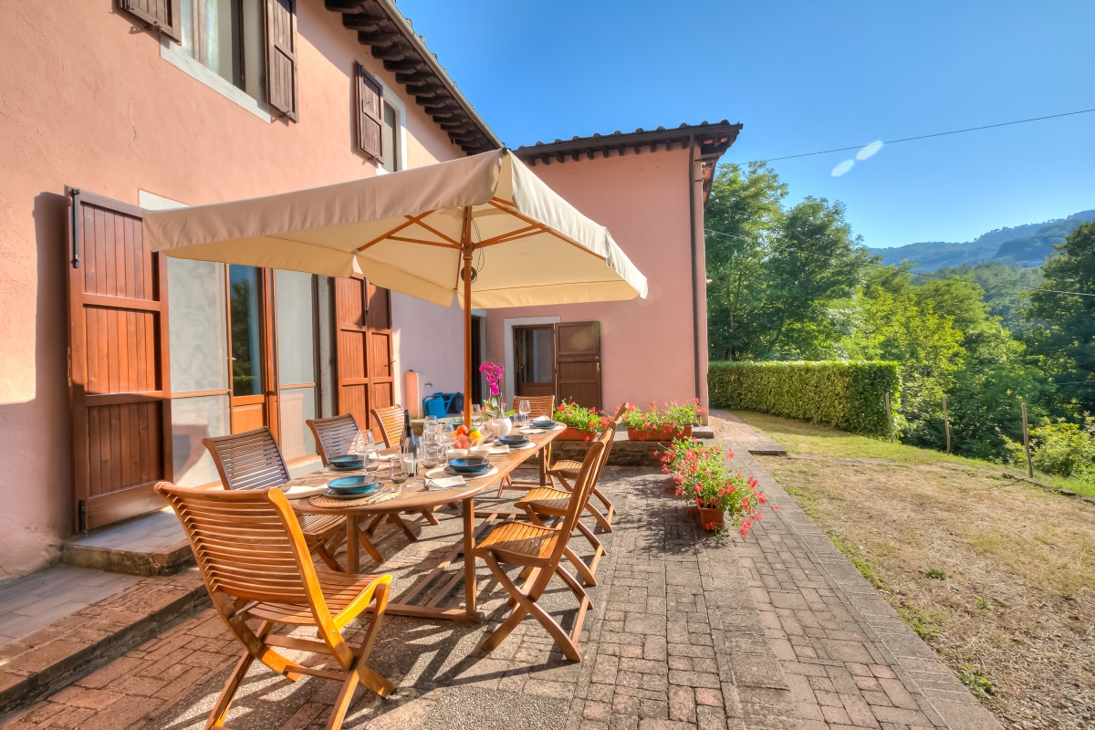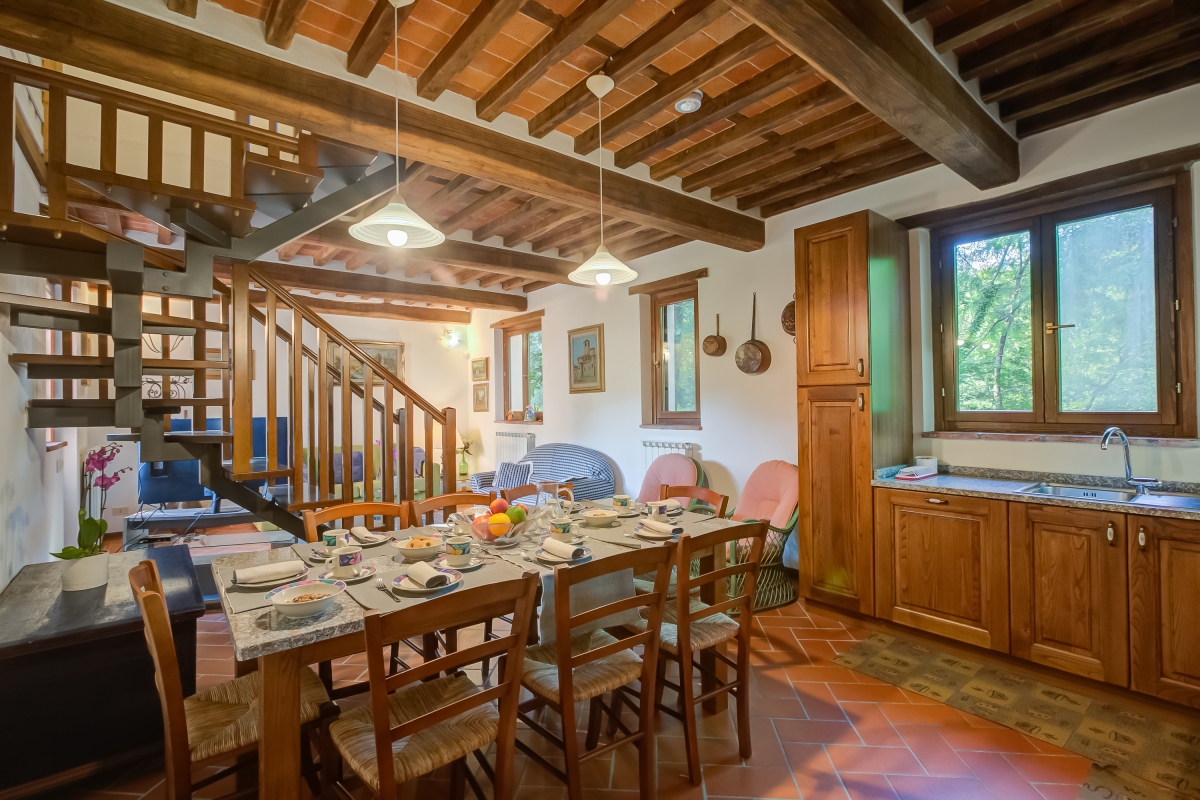 Situated in a sunny and quiet location, cuddled by the sound of a stream, embraced by the woods of the Garfagnana, this holiday home is on two floors and has a private outdoor terrace. The house has been carefully restored and finished in typical Tuscan style, with terracotta floors and wood-beamed ceilings.