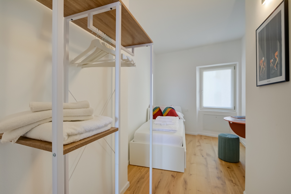Bedroom 2: The second bedroom is furnished with a single bed and a wardrobe