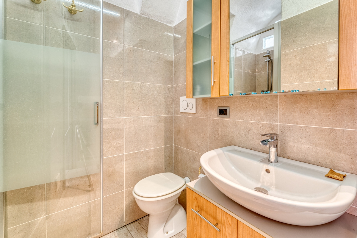 *Bathroom 2 (Third floor):** Featuring a shower, sink, toilet, and bidet, with modern accessories.