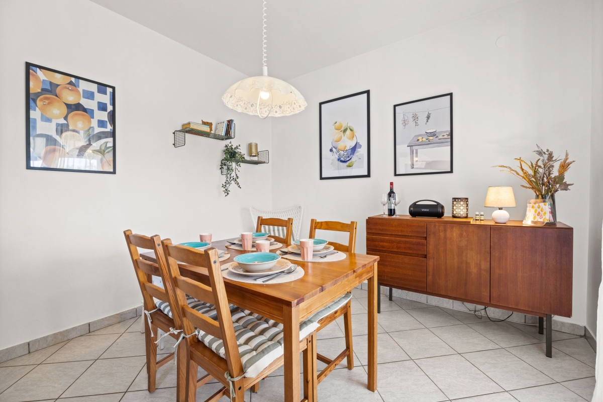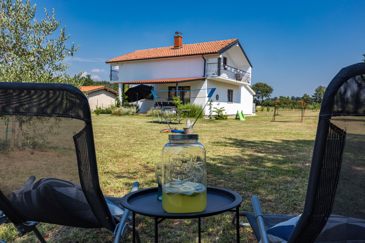 Villa Menta Piperita, nestled in the charming village of Radeki Glavica, Loborika, offers a delightful retreat surrounded by a sprawling garden. It is a two-bedroom semi-detached apartment spread across two floors, perfect for a group of 4 or couples seeking relaxation and adventure. This enchanting holiday rental welcomes you with an inviting living area on the ground floor, furnished with sofas, set elegantly around a centre table, complemented by a flat-screen TV. Guests can soak in the sun on the cosy balcony accessible from the bedrooms on the first floor. There is a separate dining area that leads to the kitchen equipped with an induction hob, a coffee machine, an electric kettle, a dishwasher, an oven, a toaster, and a fridge with a freezer.