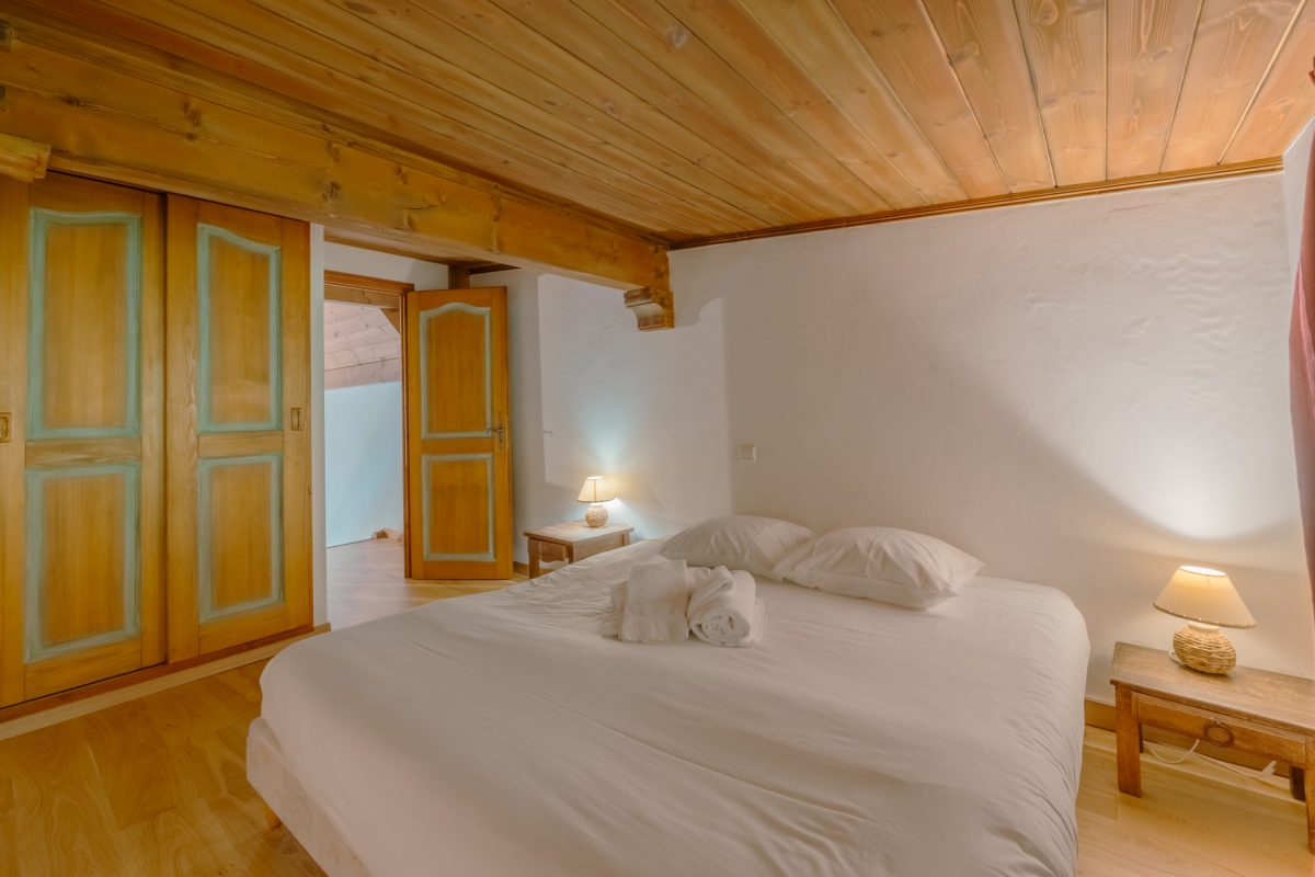 Bedroom 2: This second bedroom with wooden fittings includes a double bed and a large wardrobe