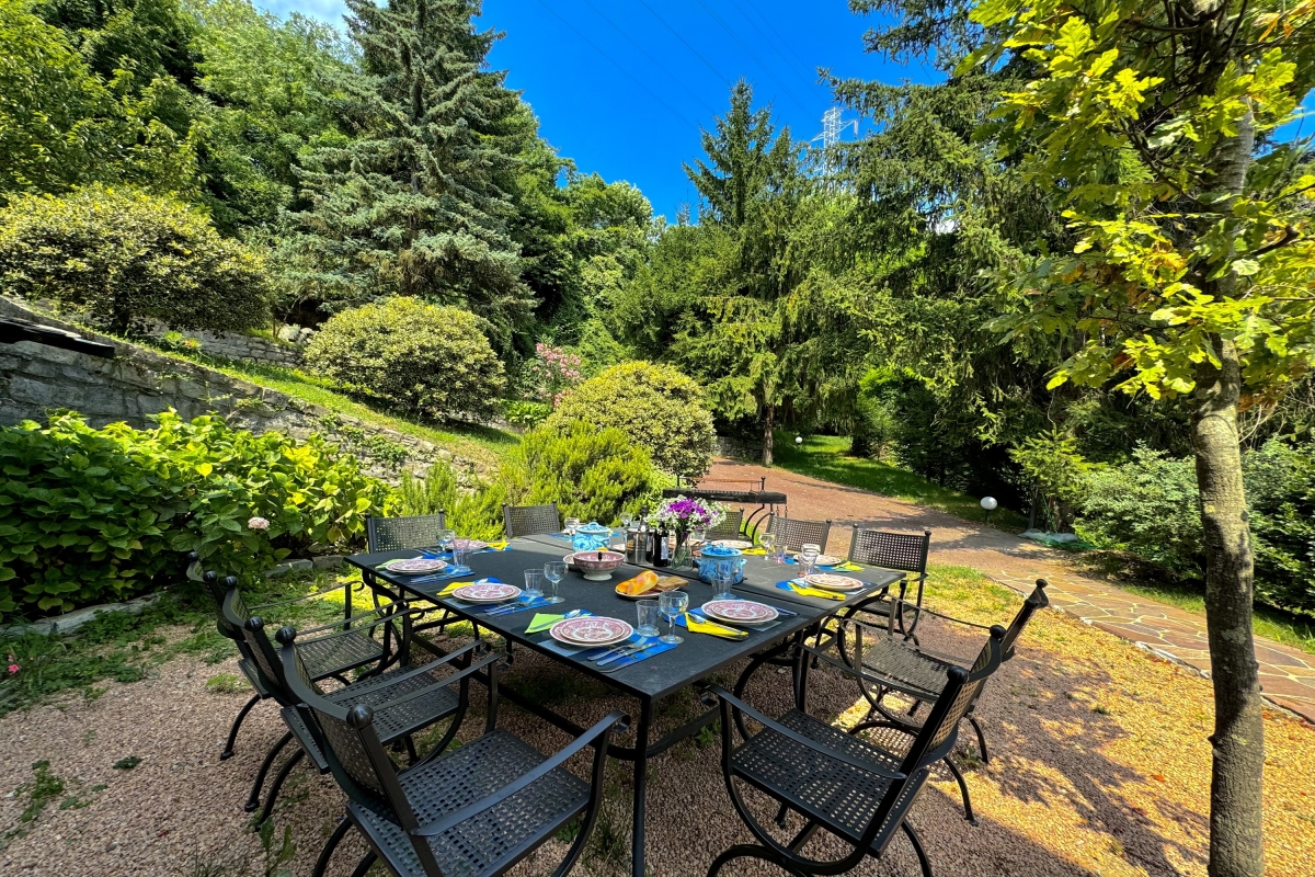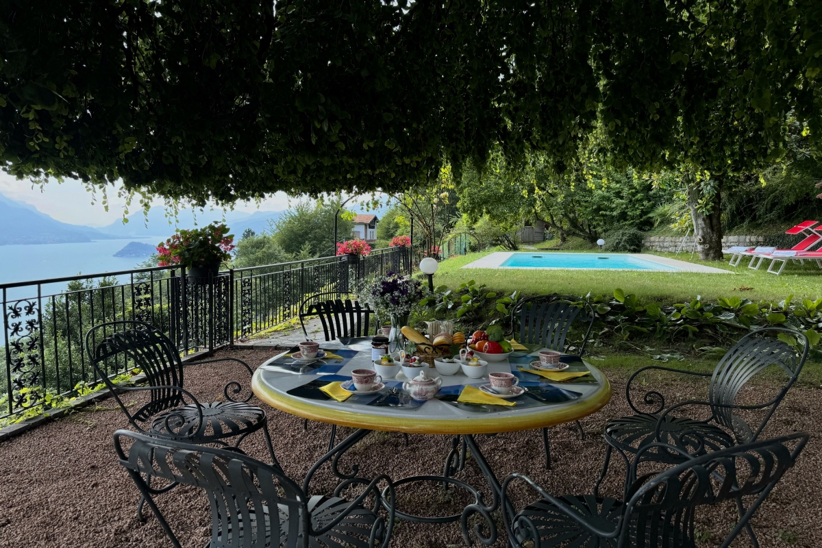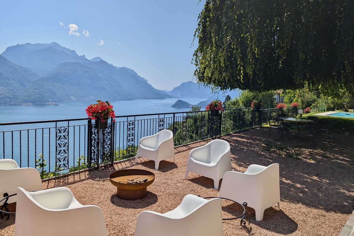 The owners have taken as much care with the outside space as they have with the interiors. The garden looks out over Lake Como to the mountains on the eastern shore. Guests can relax on sunbeds next to the private pool, or enjoy meals al fresco in one of the two delightful dining areas. There is an extensive gravel terrace with armchairs and a fire pit where guests can take in the beauty of their surroundings.