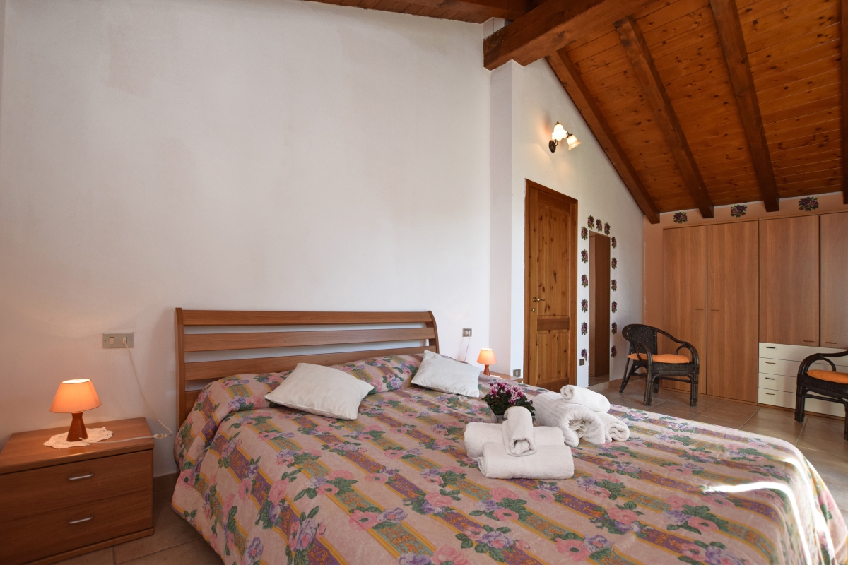 Bedroom 2: This bedroom has a double bed, a sofa chair and a wardrobe.