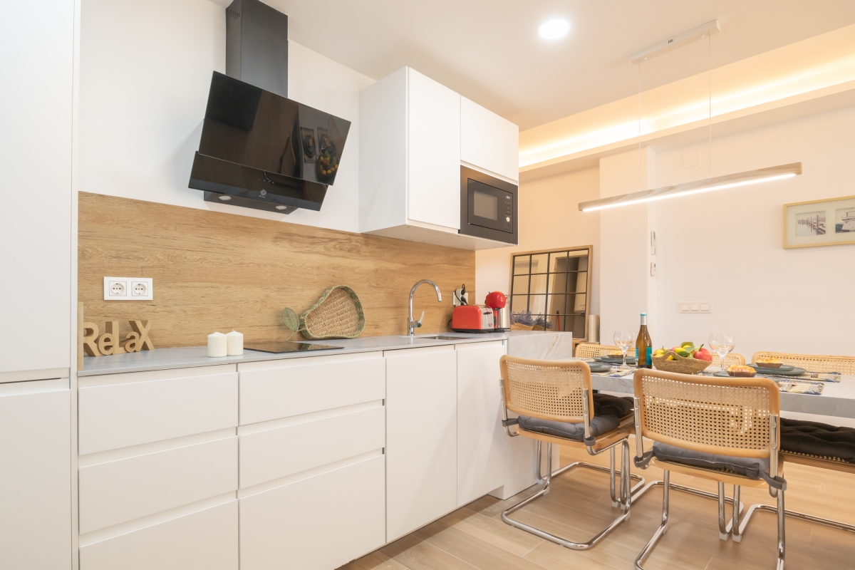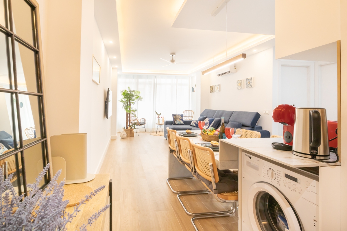 This modern apartment comfortably accommodates up to 5 guests. Located on the first floor of a 5-storey building, this apartment combines luxury with convenience, making it an ideal getaway for families and groups. Step inside into the open living area with a single sofa and TV. The fully equipped kitchen includes a coffee machine, dishwasher, electric kettle, microwave, toaster, fridge, induction hob and dining area. The apartment also features free Wi-Fi.