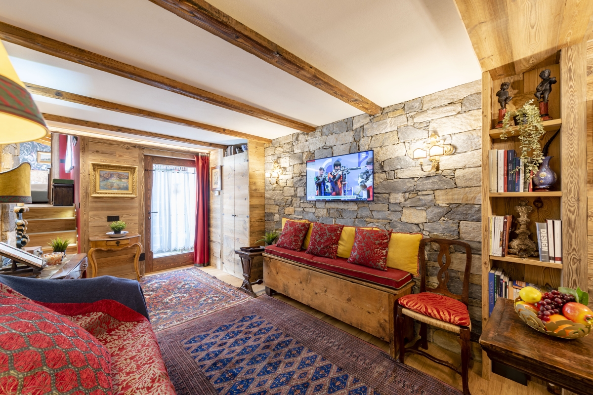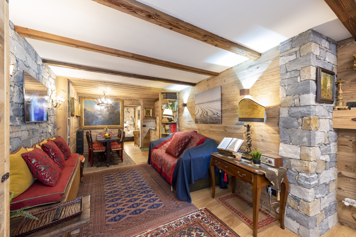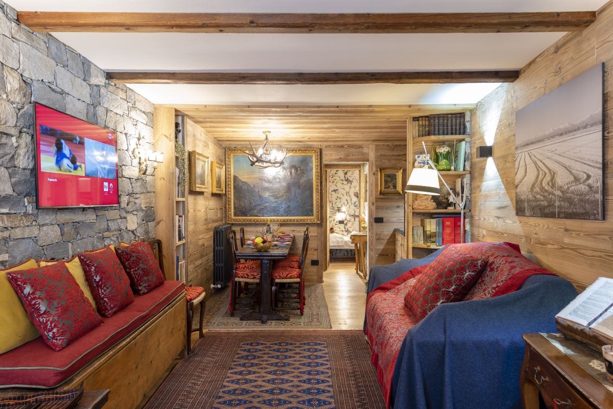 The apartment is in the charming resort of Courmayeur, high in the Alps, on the Italian side of Mont Blanc. The traditional houses are made of stone and wood, with pretty paved streets. The historic town centre is just a 4-minute drive. Here visitors will find boutiques, cafés and restaurants.