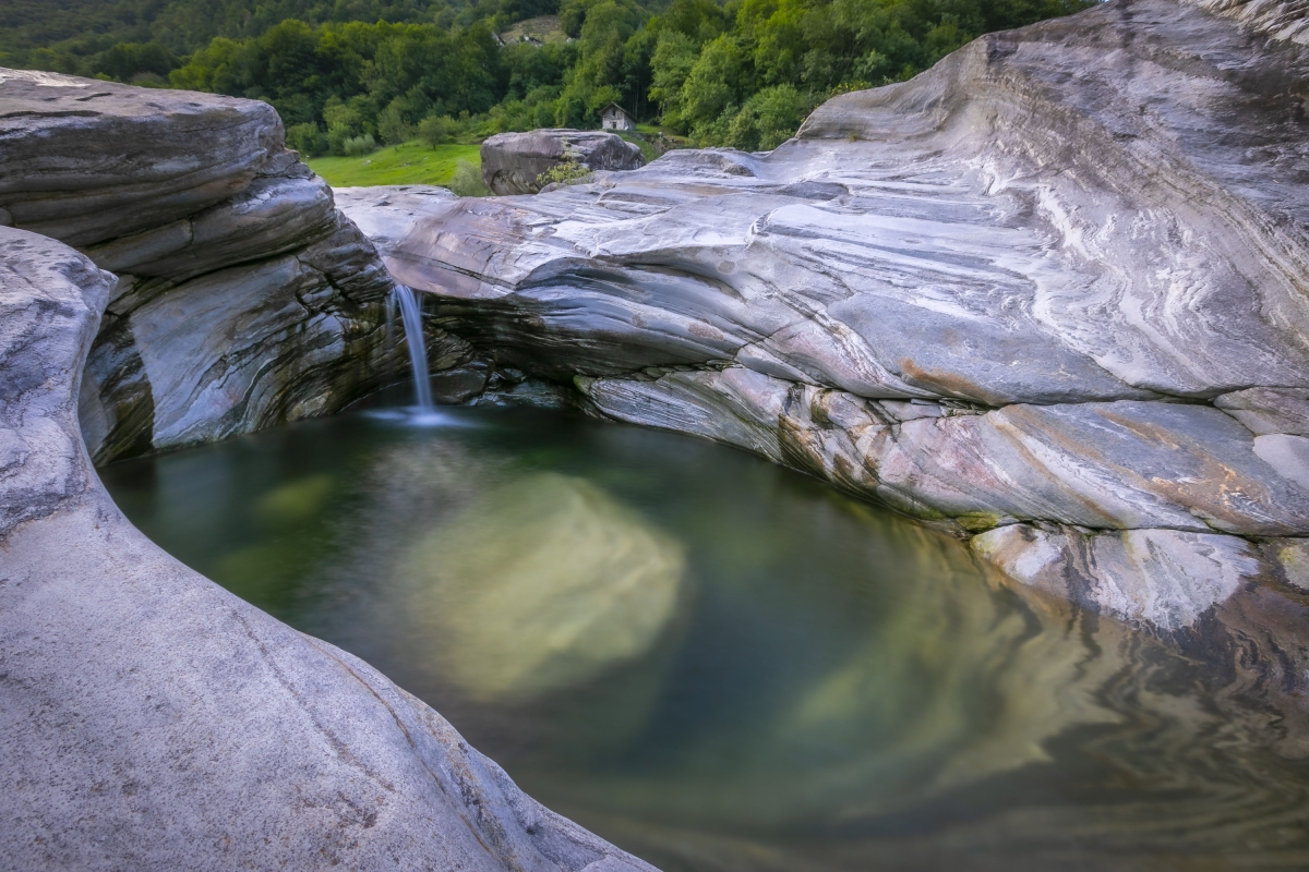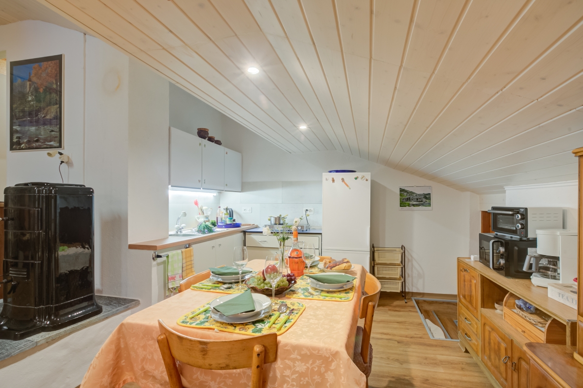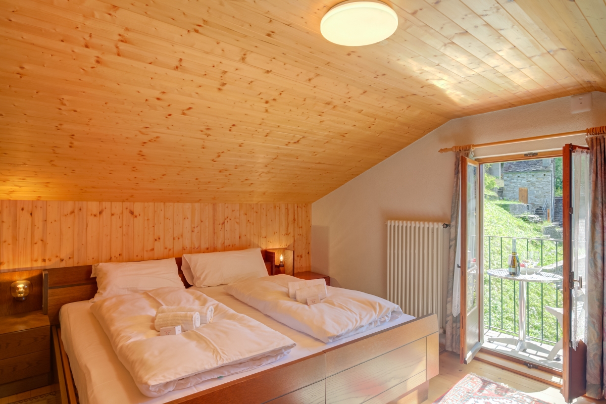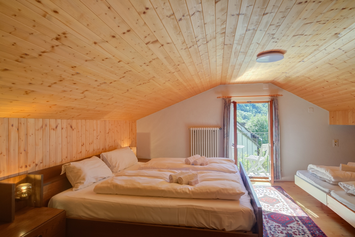 The house is on a quiet side road in the charming village of Frasco, in the Val Verzasca. Frasco is off the beaten track, surrounded by meadows and woodland, overlooking the lovely Verzasca River. There are many hiking trails as well as stunning treks along the Redorta River, up to La Froda waterfall (a 40-minute walk). The woodland trails of Bobosco (www.bobosco.ch) are very popular with children (10 minutes). The idyllic village of Sonogno is just 5 minutes from the house. Here guests can find a small grocery store and various cafés.