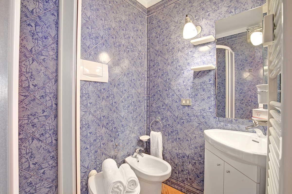 There is an independent bathroom with a shower, basin, WC and bidet.